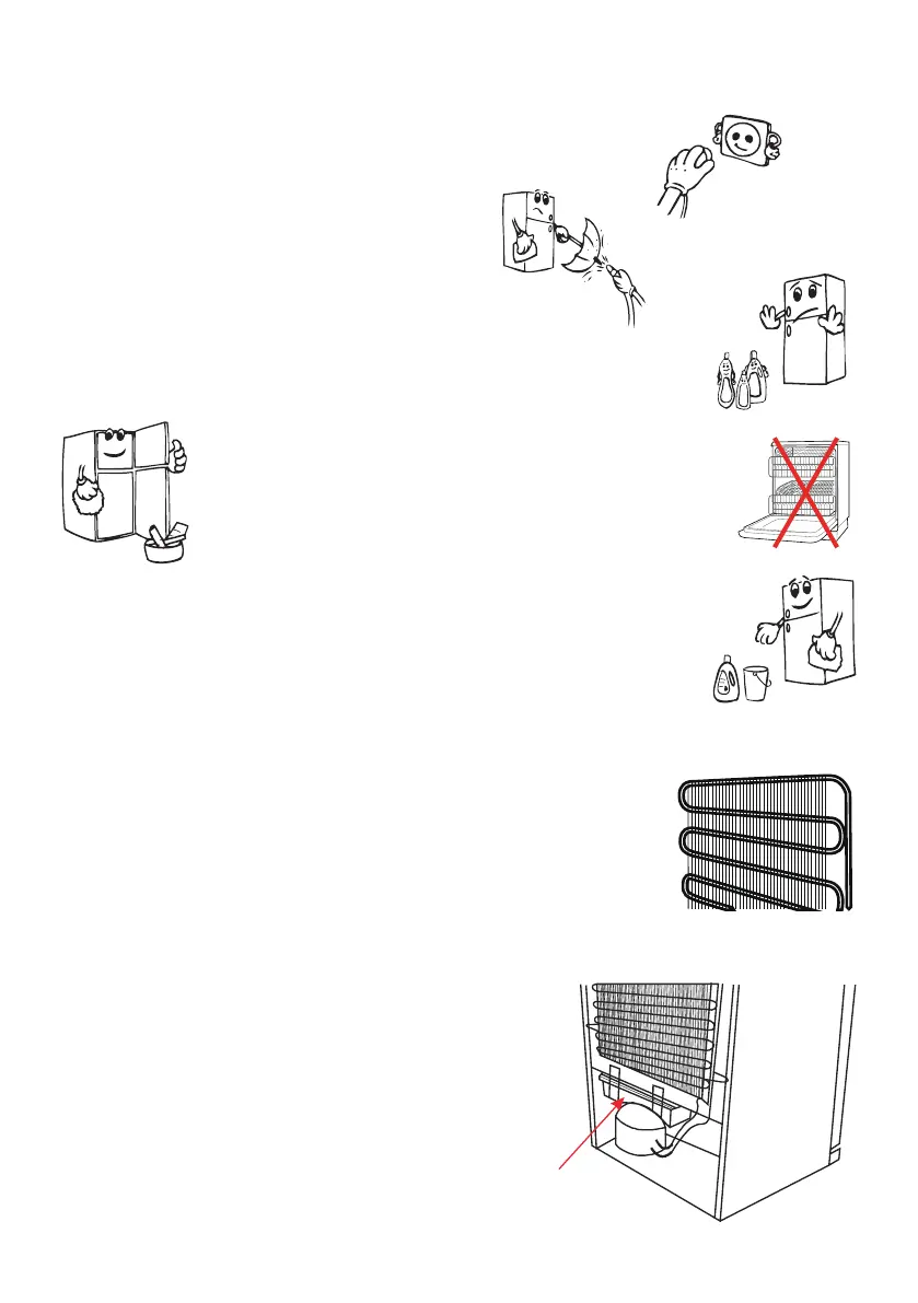 • Das Kühlfach sollte regelmäßig mit einer Lösung aus