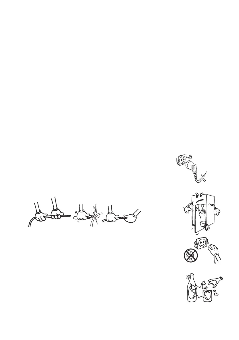 • U mag niet aan het snoer trekken en u mag het ook niet buigen of