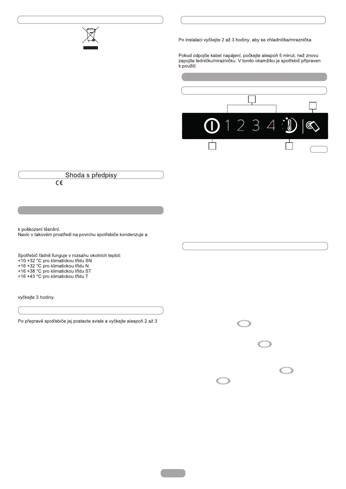 • Než začnete spotřebič používat, po konečném umístění spotřebiče