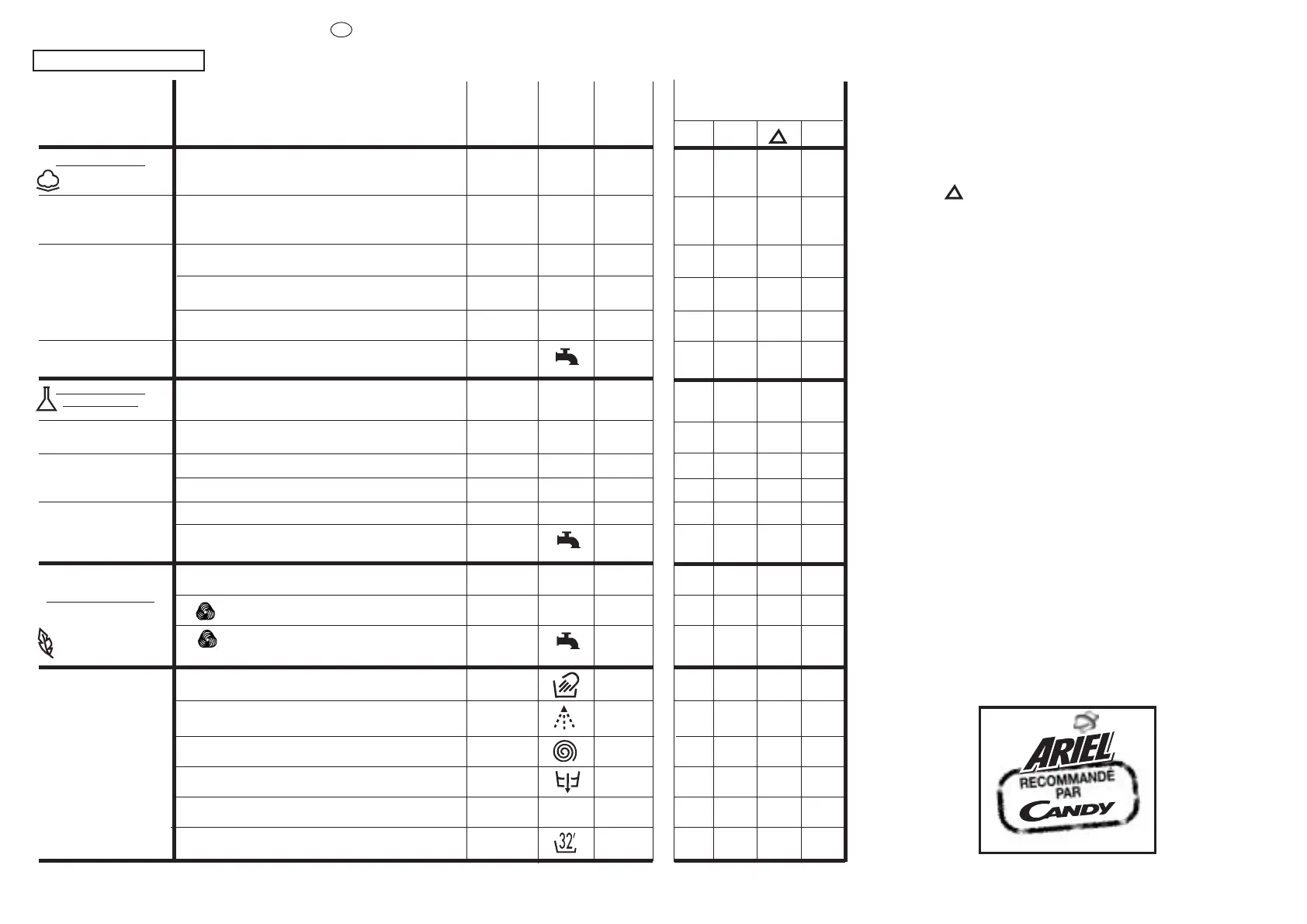 vitesse d’essorage selon les conseils du fabricant du tissu. Si l’étiquette