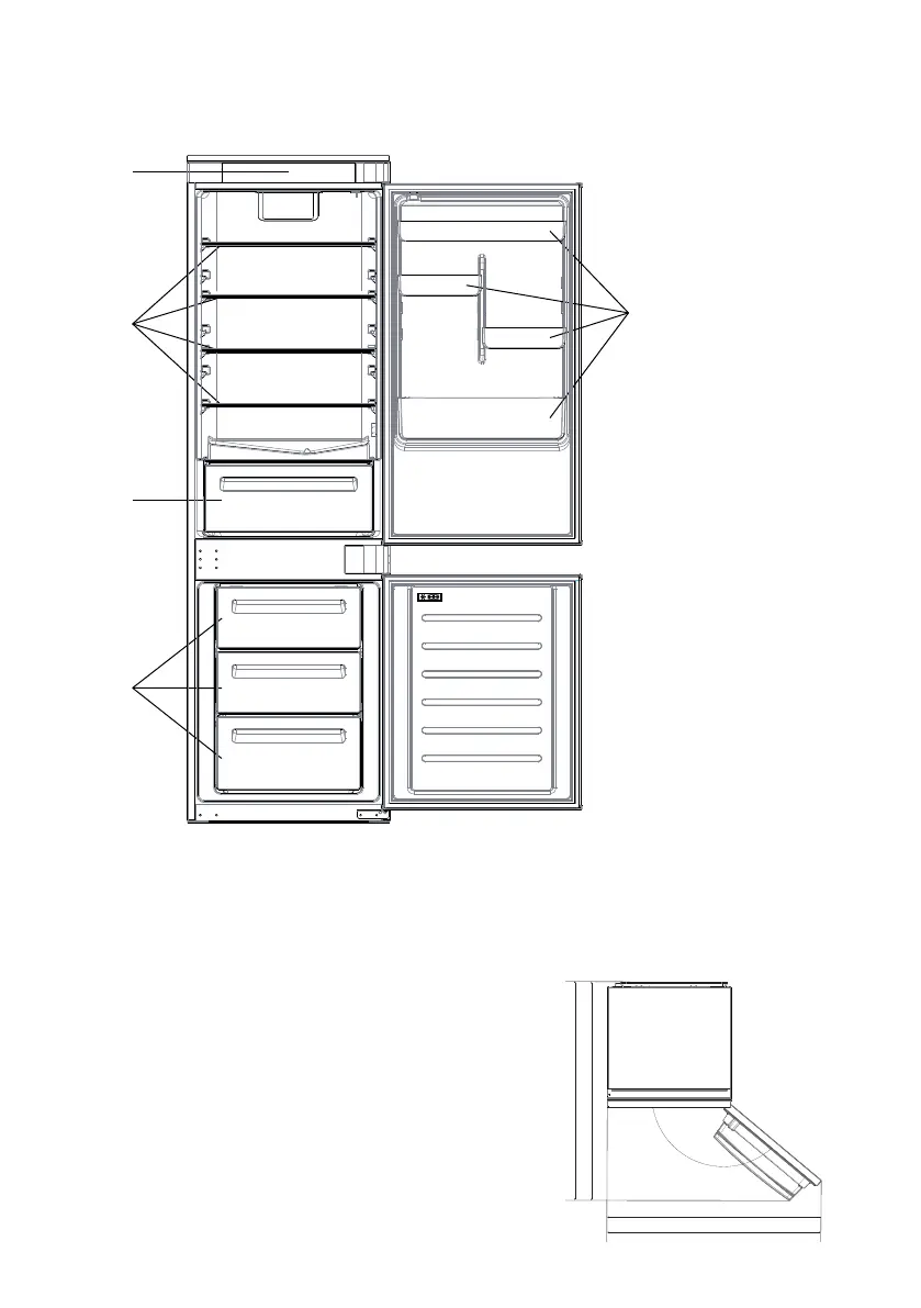 ящики, ящик для продуктов и полки были расположены внутри прибора, а