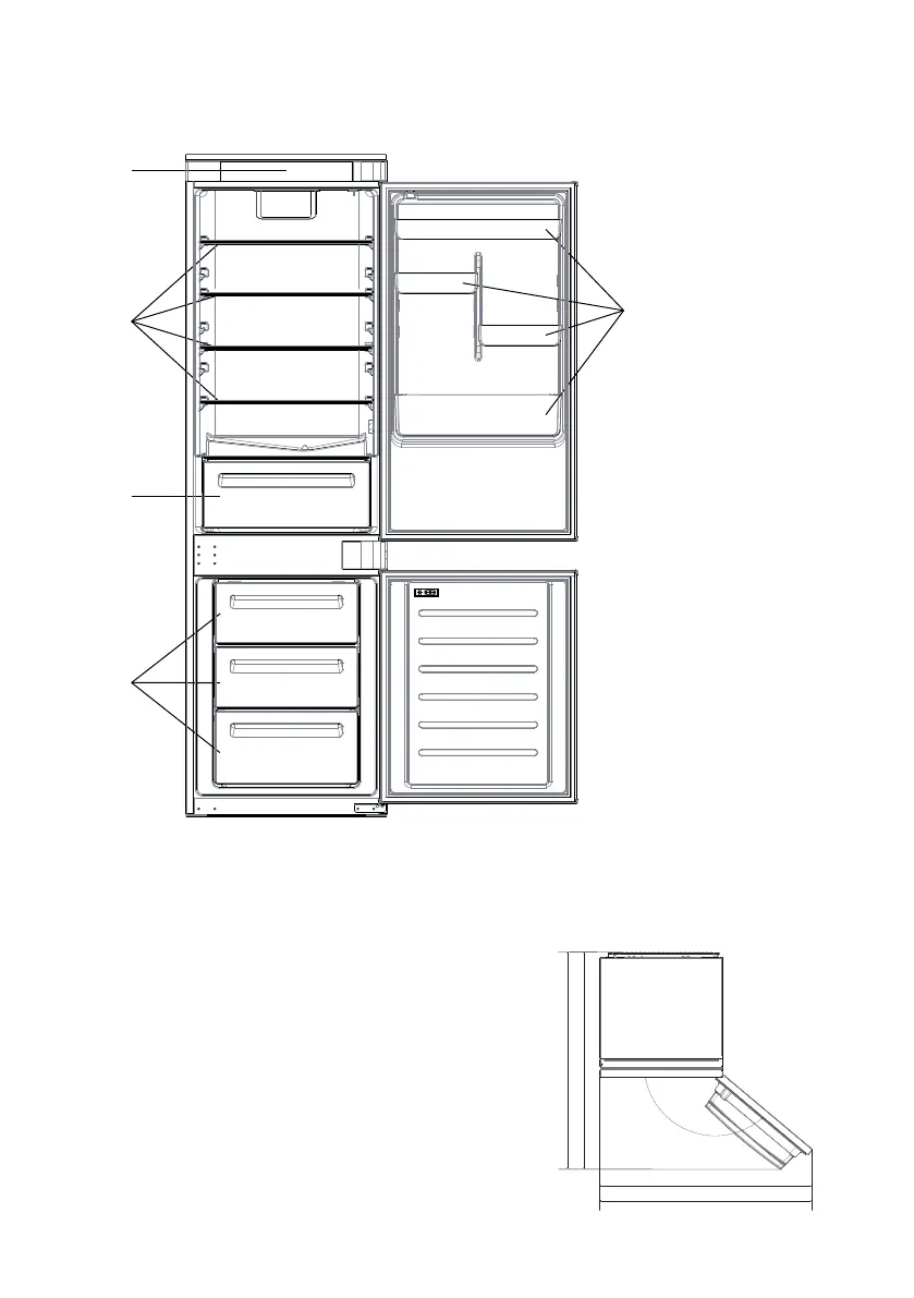 * De meest energiebesparende configuratie vereist dat lades, levensmiddelenschappen en planken