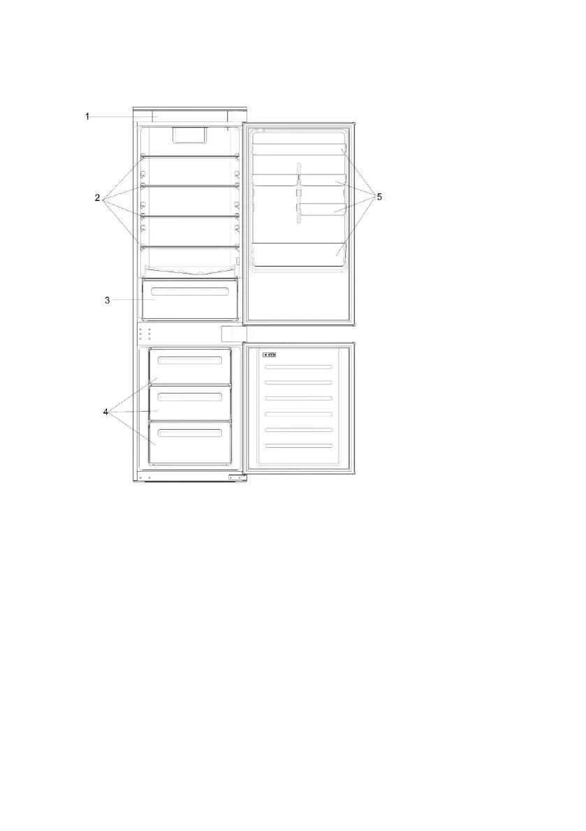 выдвижные ящики, ящик для продуктов и полки были расположены внутри