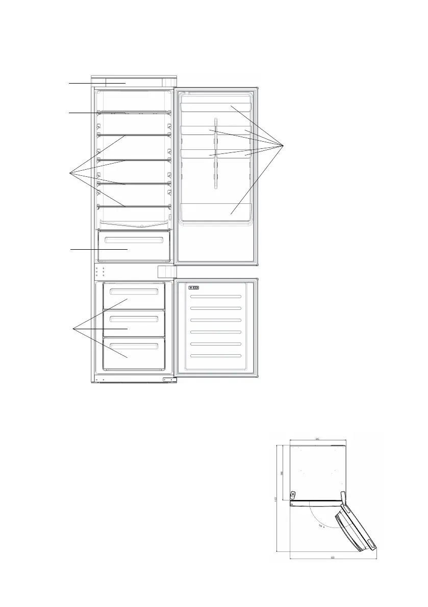 * Den mest energisparende konfigurasjonen krever at skuffer, matboks og hyller skal være plassert i