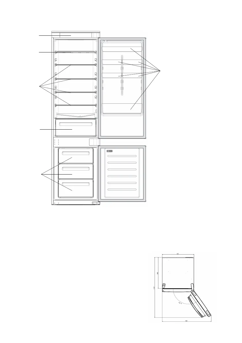 выдвижные ящики, ящик для продуктов и полки были расположены внутри