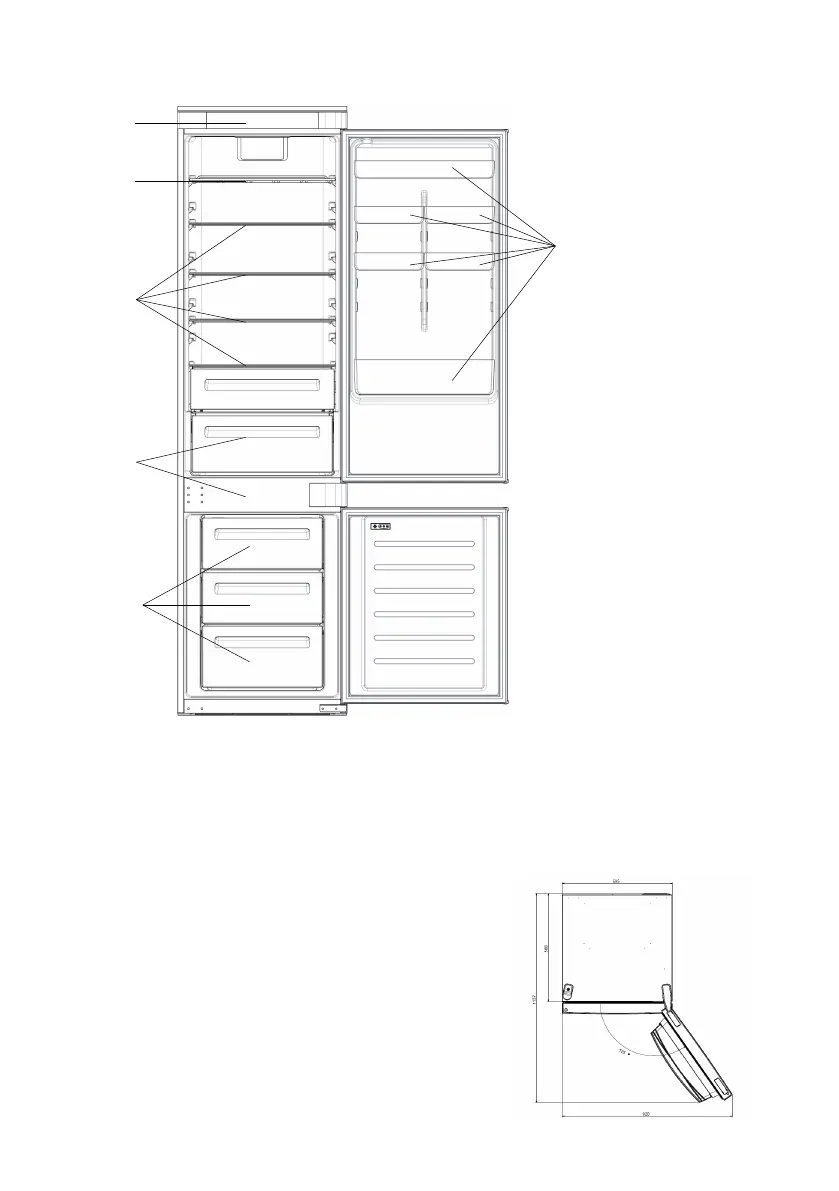 выдвижные ящики, ящик для продуктов и полки были расположены внутри