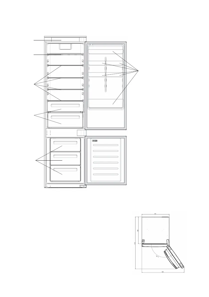 * Laite käyttää vähiten energiaa, kun hyllyt, laatikot ja ruokalaatikko on asetettu laitteen sisään ja