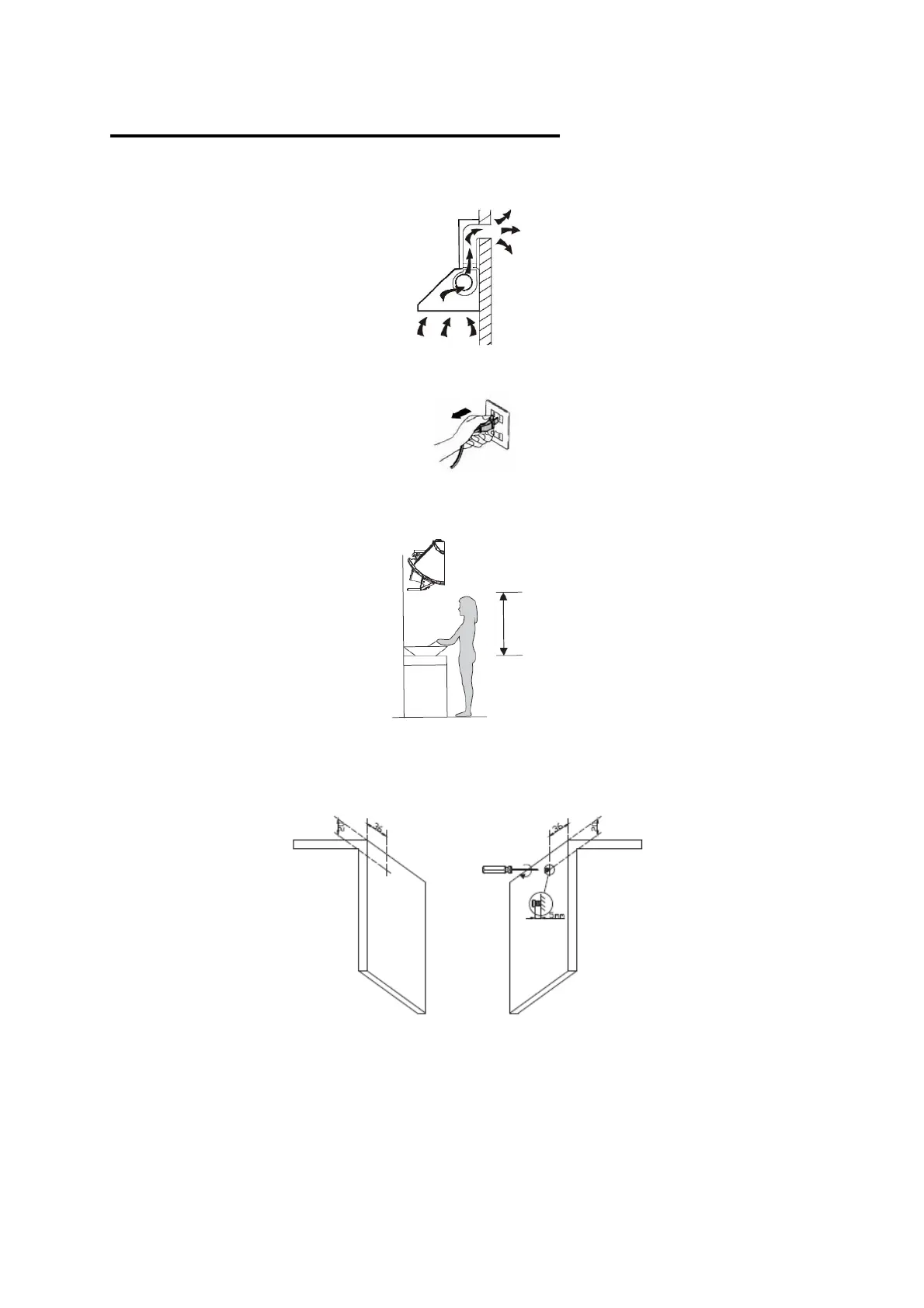 bedragen, de afstand tussen de schroef en het kookoppervlak mag niet minder dan 1040 mm