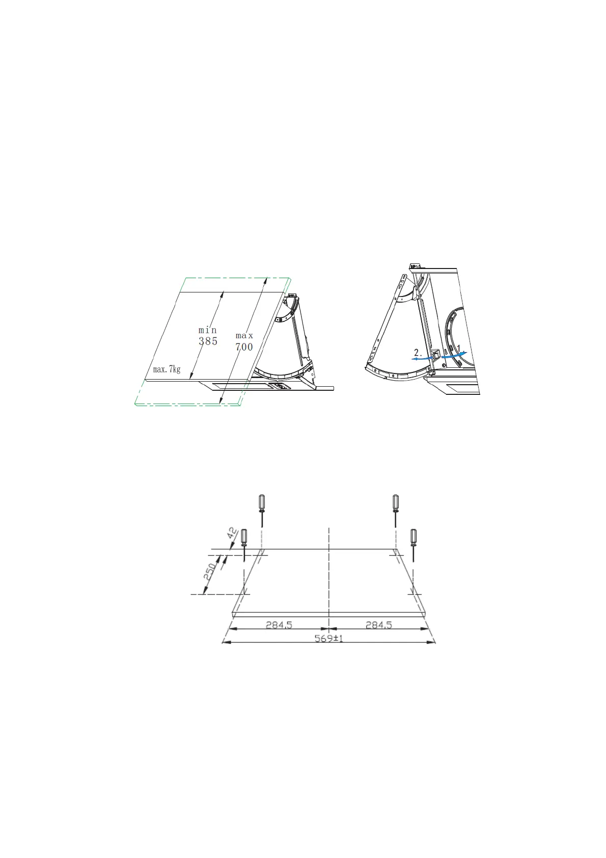 9. Door installation: The door should be no less than 16mm thick, 385-700mm