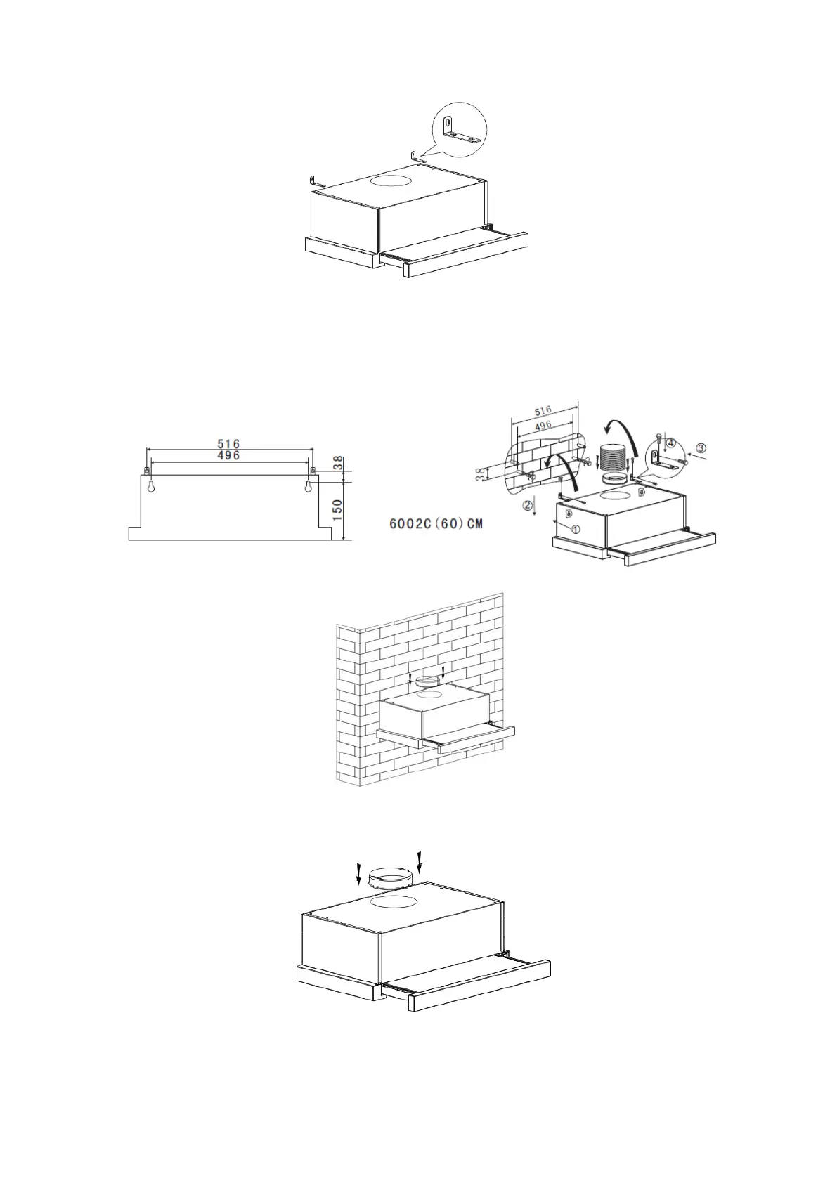 3. Odsávač pár je namontovaný na stenu pomocou 4 skrutiek (4 mm x 30 mm) a