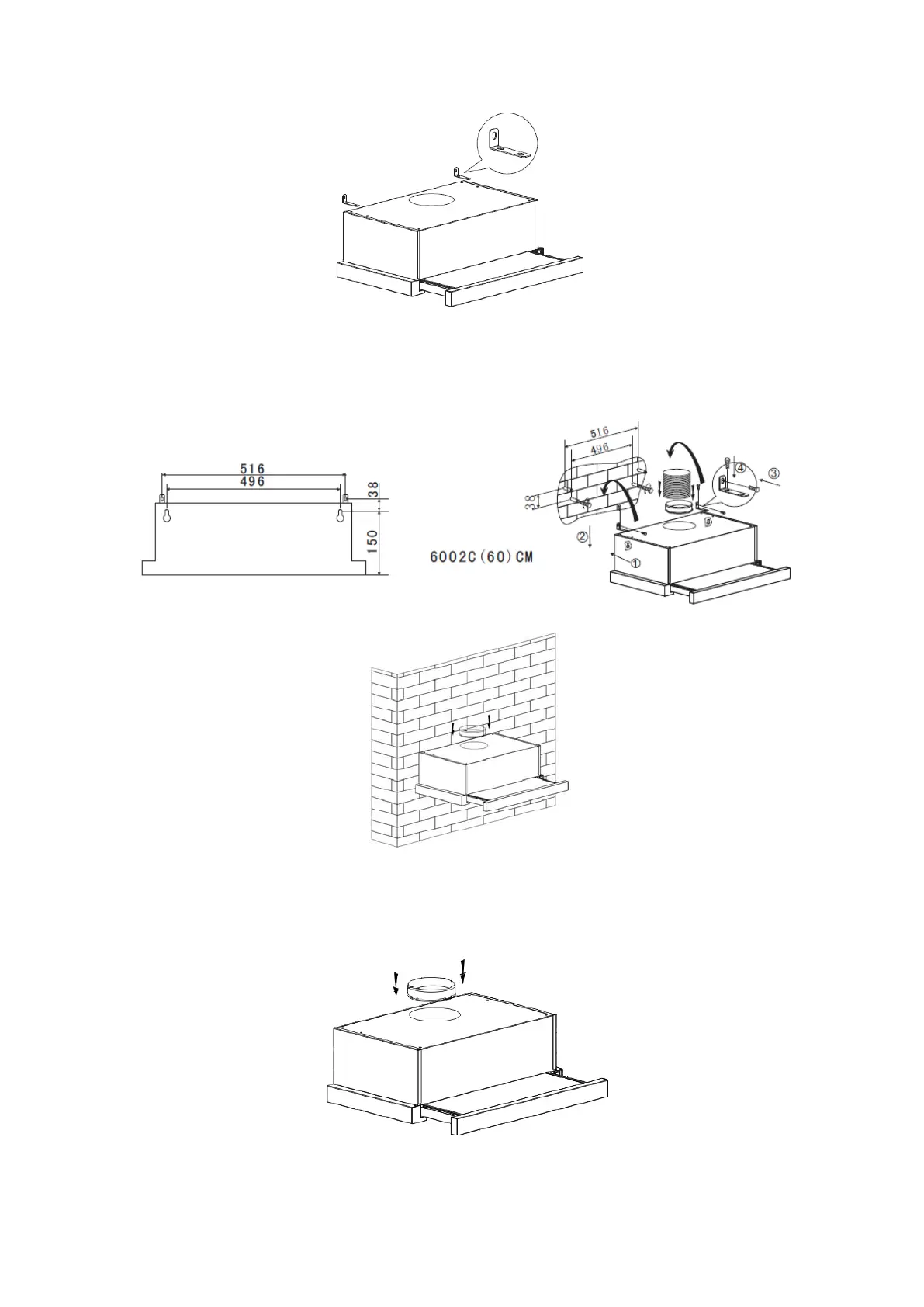Wand hinter der Haube montiert. Dann wird die Abzugshaube wird mit zwei (2)
