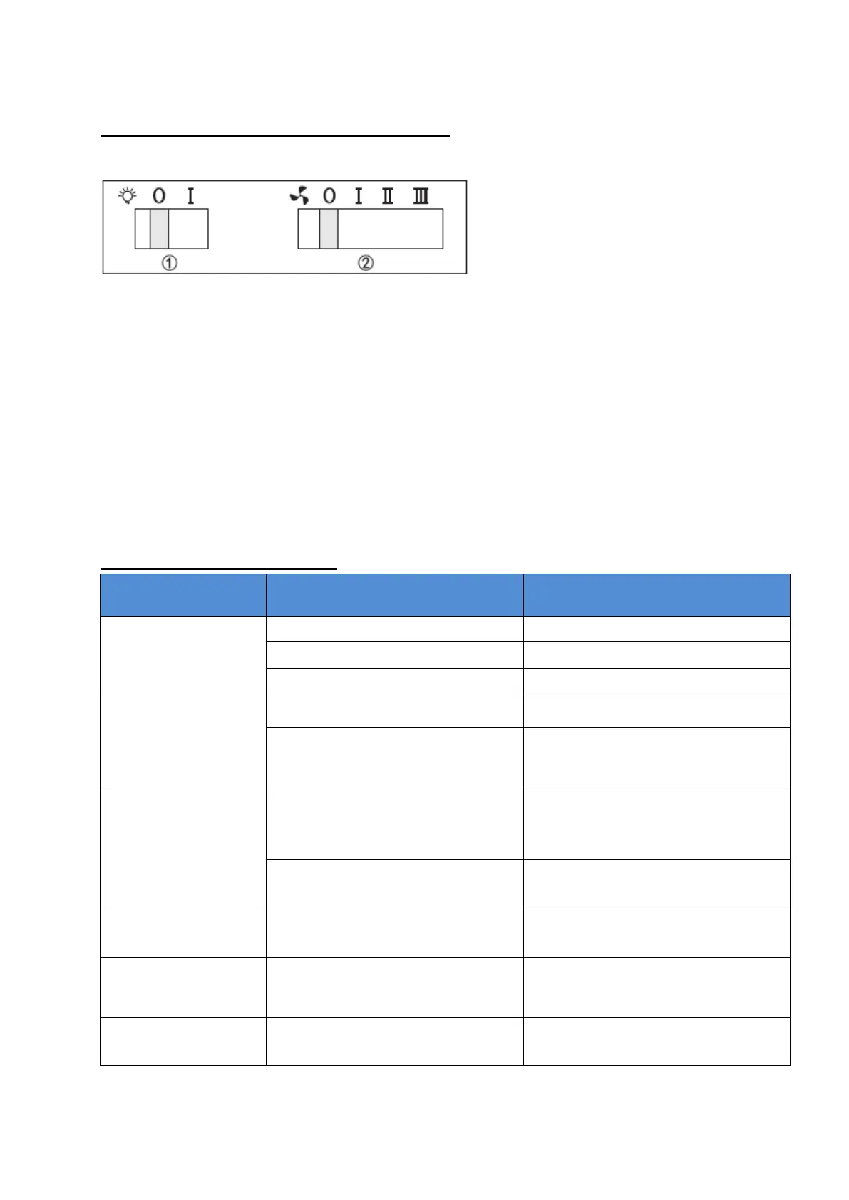 There are 3 speeds for the motor and on/off switch for the lamp.