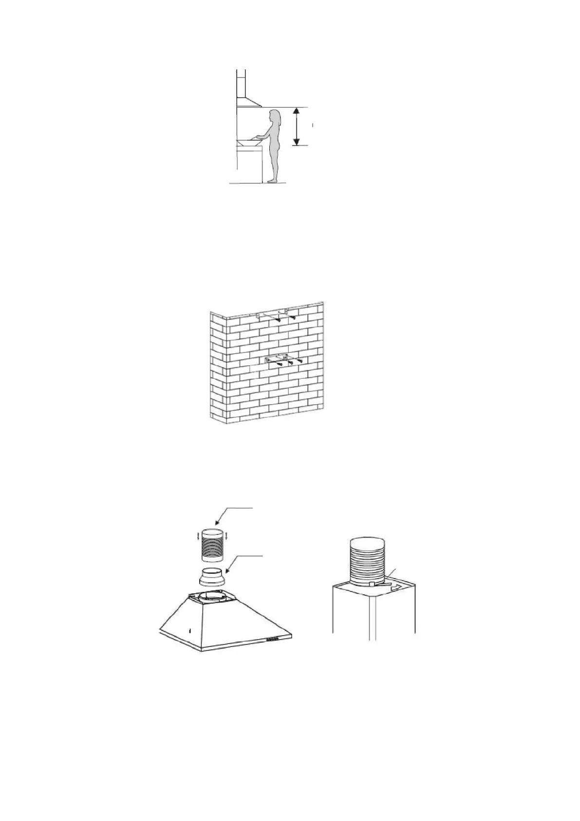 an der Wand. Befestigen Sie dann die Halterung des Innenabzugs mit zwei