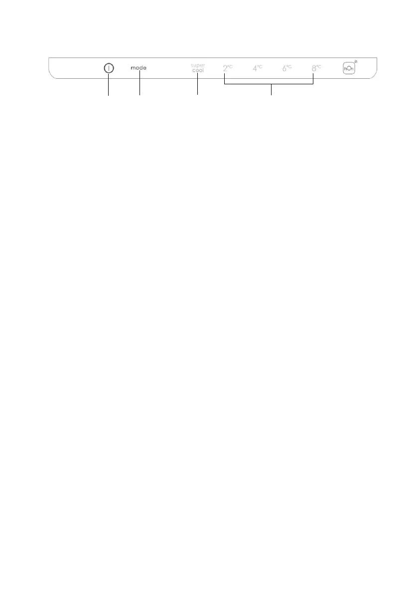 ➁ Tlačidlo Mode, používa sa na výber teploty v chladničke alebo špeciálnych funkcií.