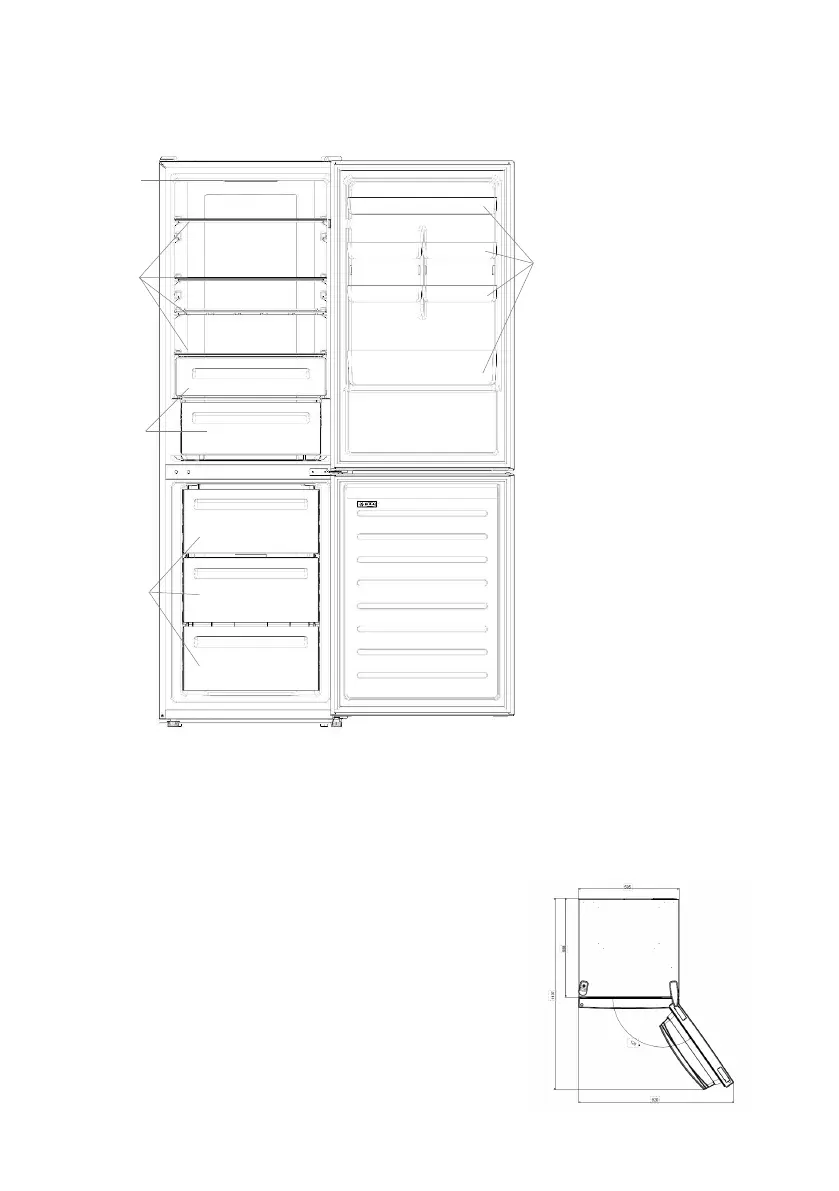 храна и рафтовете да бъдат позиционирани в продукта, моля, вижте горните