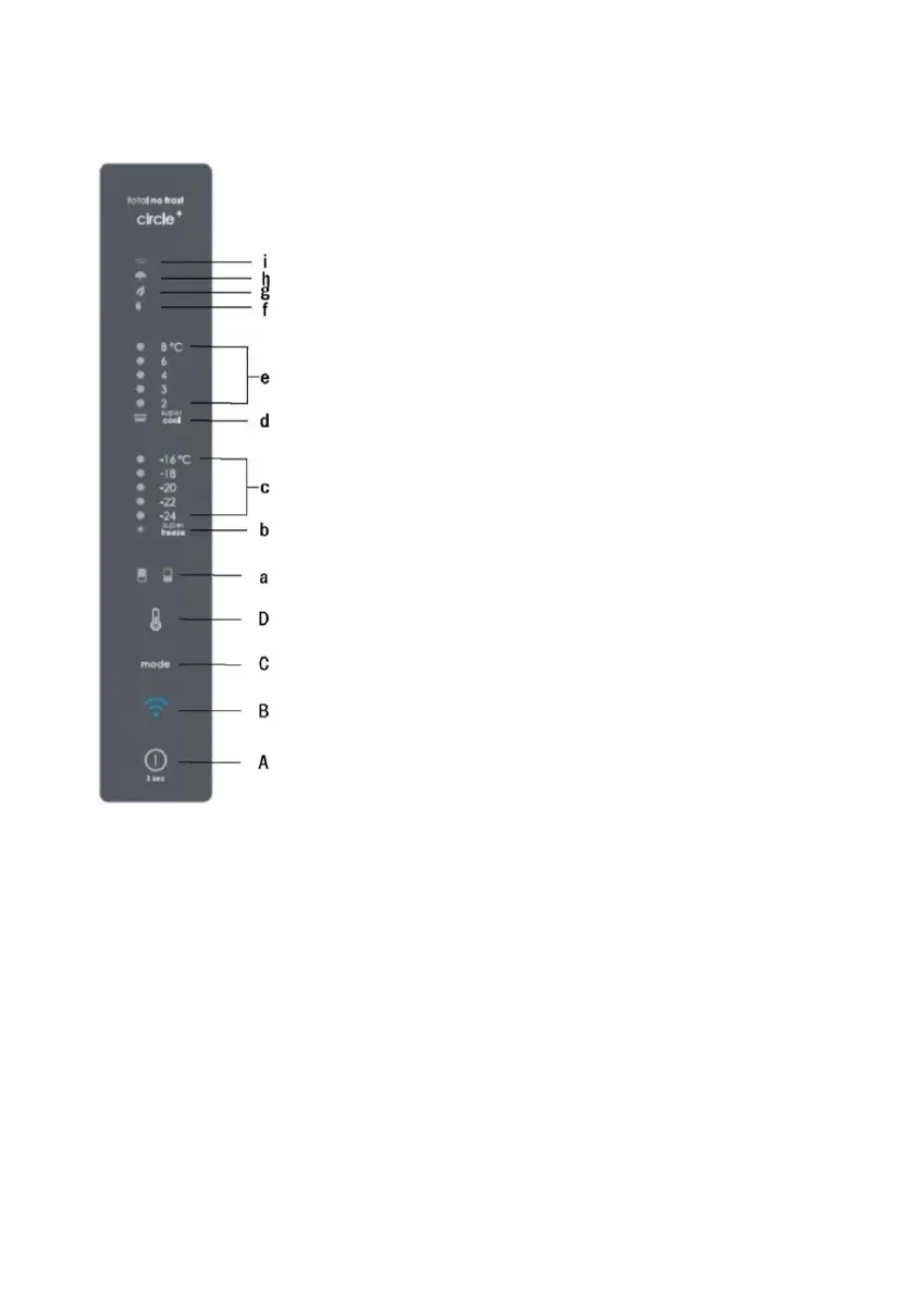 vai saldētavas) ikona, kā arī visi atbilstošā nodalījuma temperatūras LED