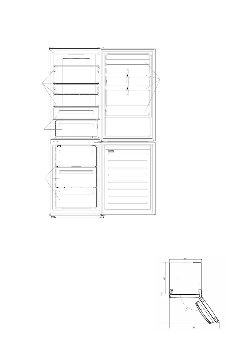 The unit’s door must be able to fully open as shown. Spare
