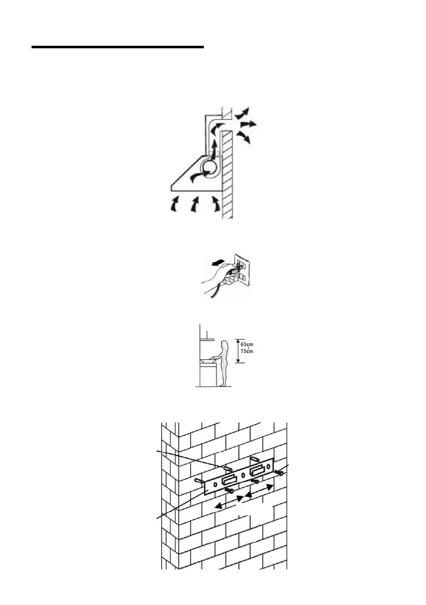 2. De afzuigkap moet op een afstand van 65~75cm boven de kookplaat