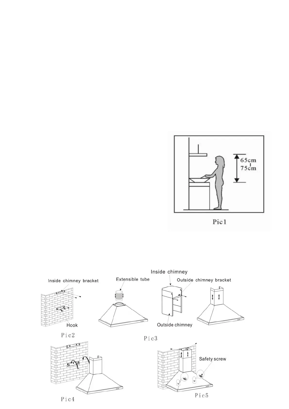 3.1 Pour une prestation la meilleure la hotte doit être placée à une distance de 65-