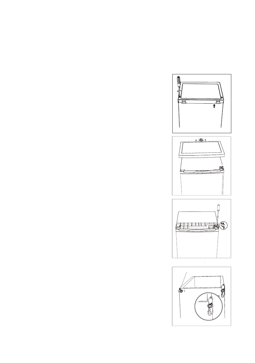 • Vi anbefaler at dere er to når dere hengsler om døren på kjøleskapet/fryseren.