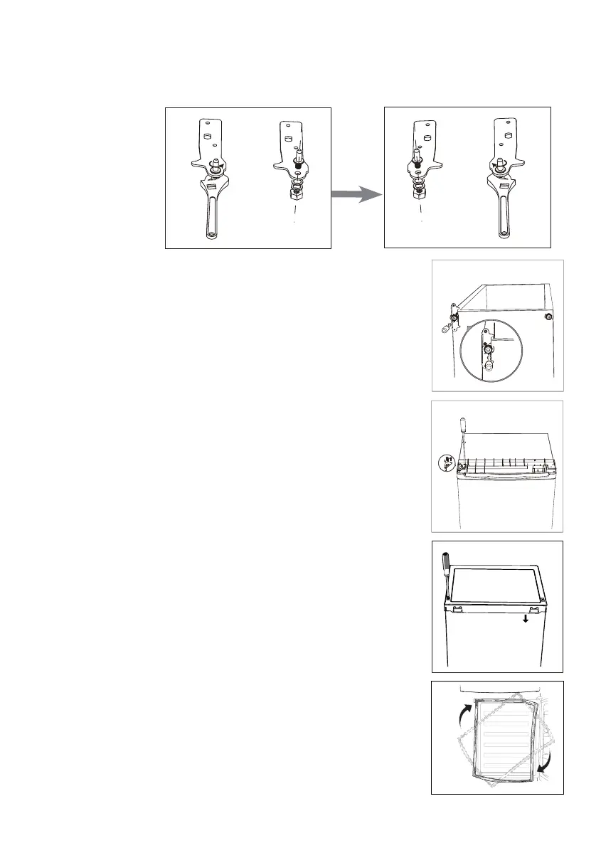 Odvijte in odstranite zatič spodnjega tečaja, obrnite nosilec in ga zamenjajte.