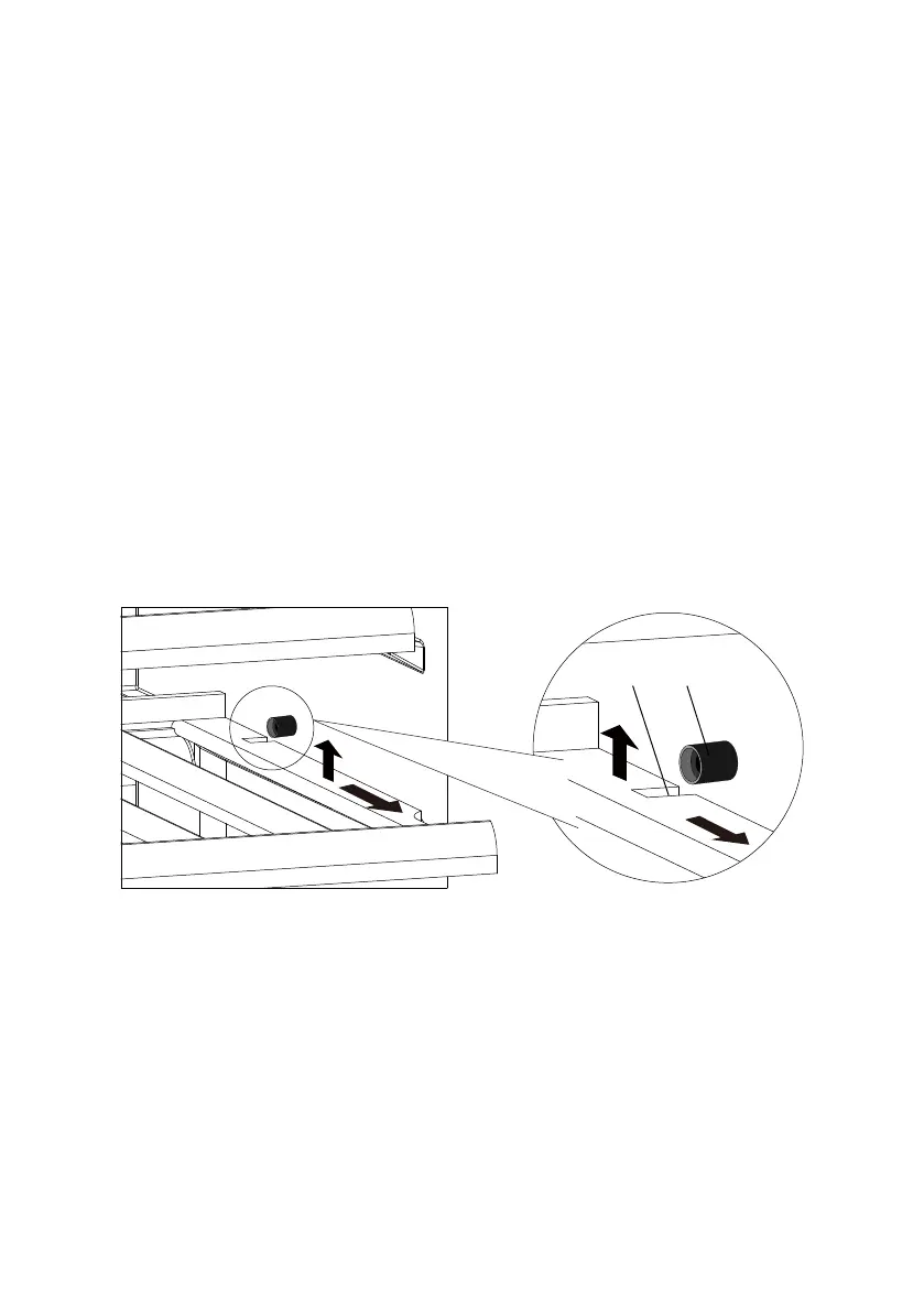 directly under the plastic stopper and lift the wooden shelf. Please ensure