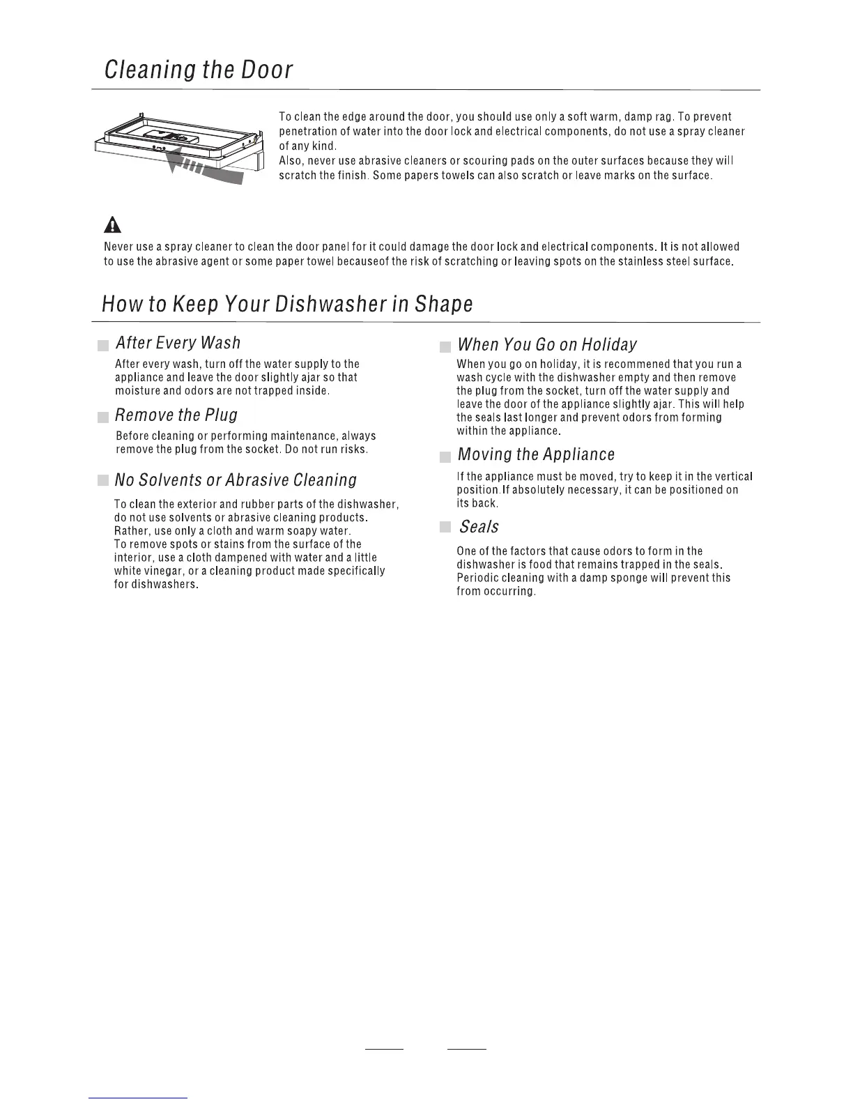Candy CDCF6 - Cleaning and Maintenance; Cleaning the Door and Exterior; Dishwasher Care Tips