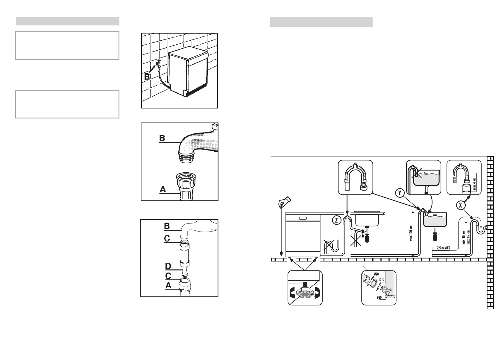 Candy CDF 312 - Water Connection; Inlet Hose Setup; Outlet Hose Connection
