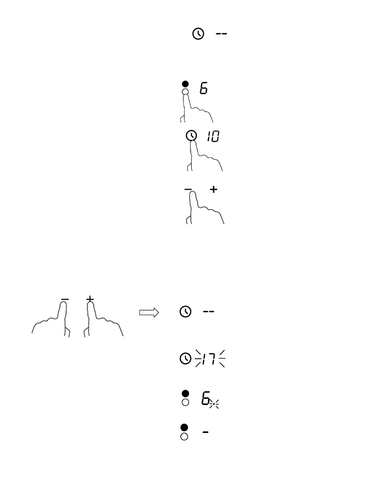 4. Докосване едновременно “-“ и “+”,води до отмяна на таймера, и символът ”--” се появява на дисплея за