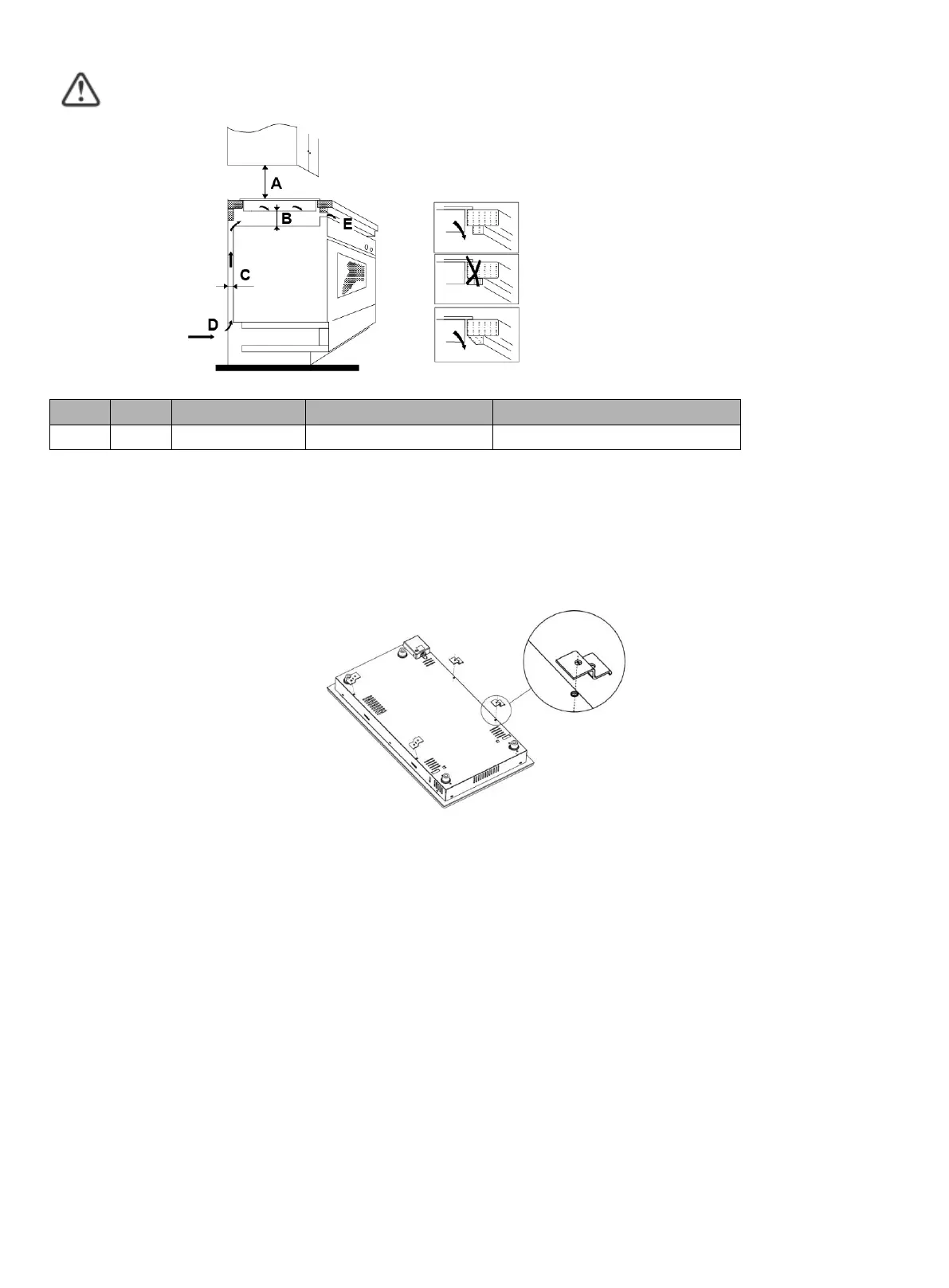 Забележка: Безопасното разстояние между горещия плот и шкаф над него трябва да бъде поне 760 mm.
