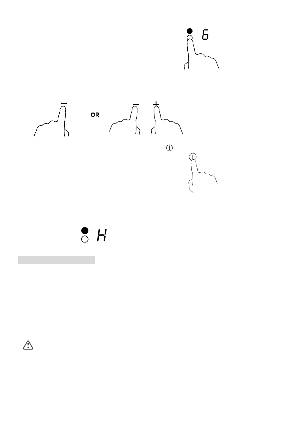 2. Varnou zónu vypněte nastavením výkonu na „0 “ nebo současným dotekem ovladačů „-“ a