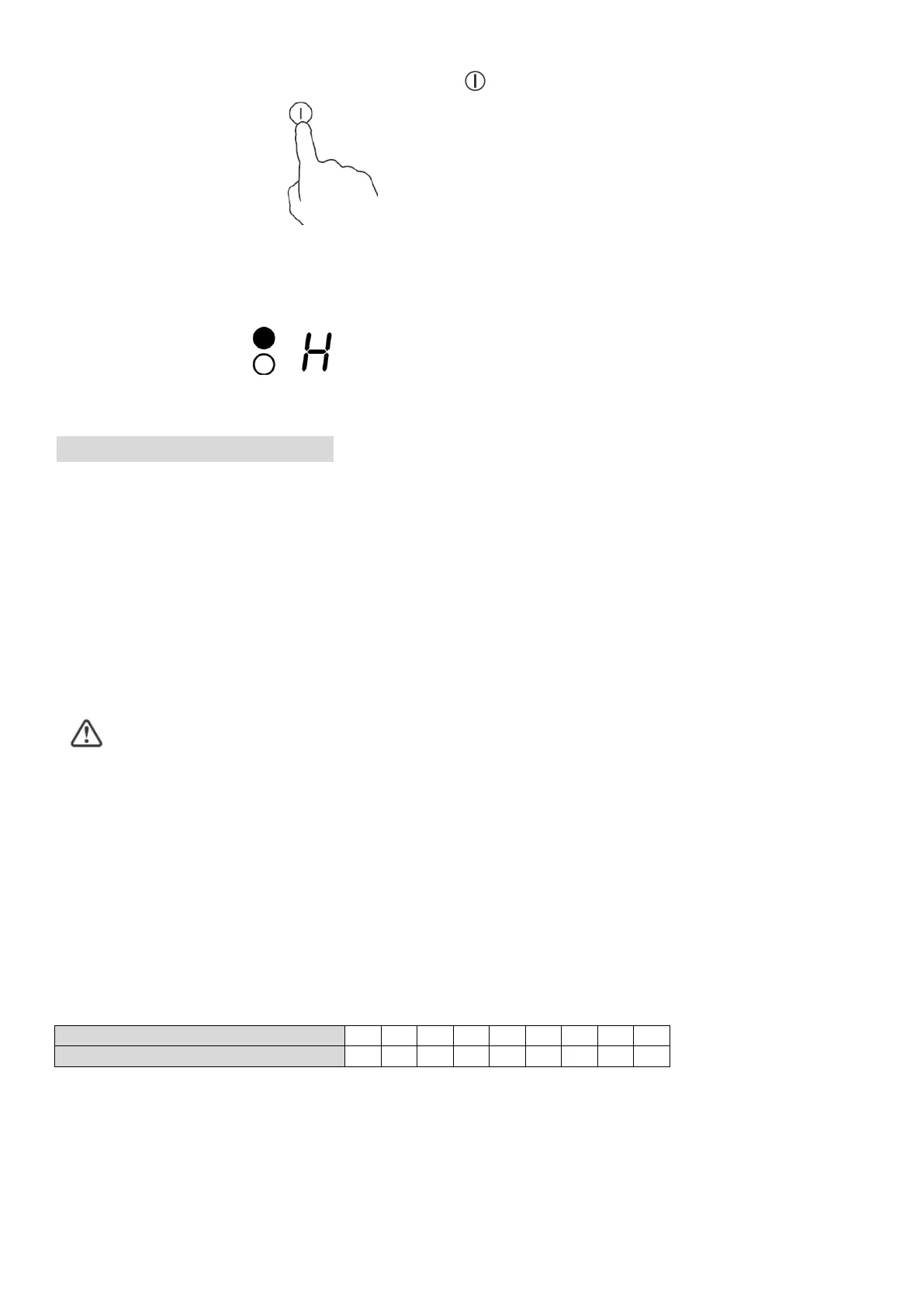 Litera „H” wskazuje, że pole grzewcze jest gorące. Po ochłodzeniu pola do bezpiecznej temperatury ostrzeżenie to