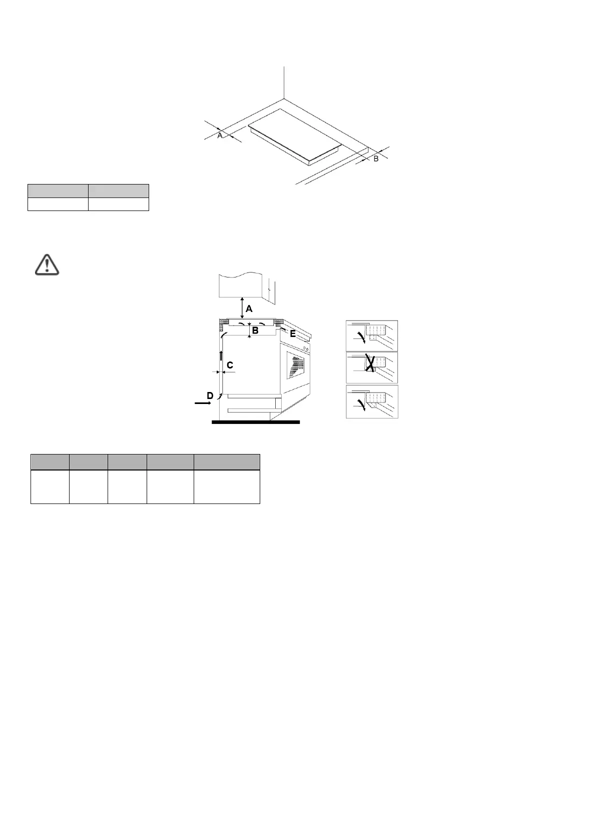 Примечание: Безопасное расстояние от рабочей поверхности панели до ящика или вытяжки сверху должно