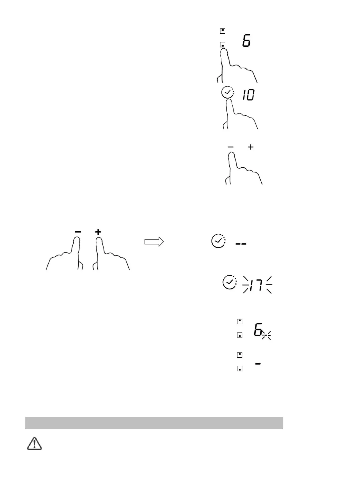 4. En touchant " - " et " + " simultanément, la minuterie est supprimée et " - - " apparaît sur l'afficheur des