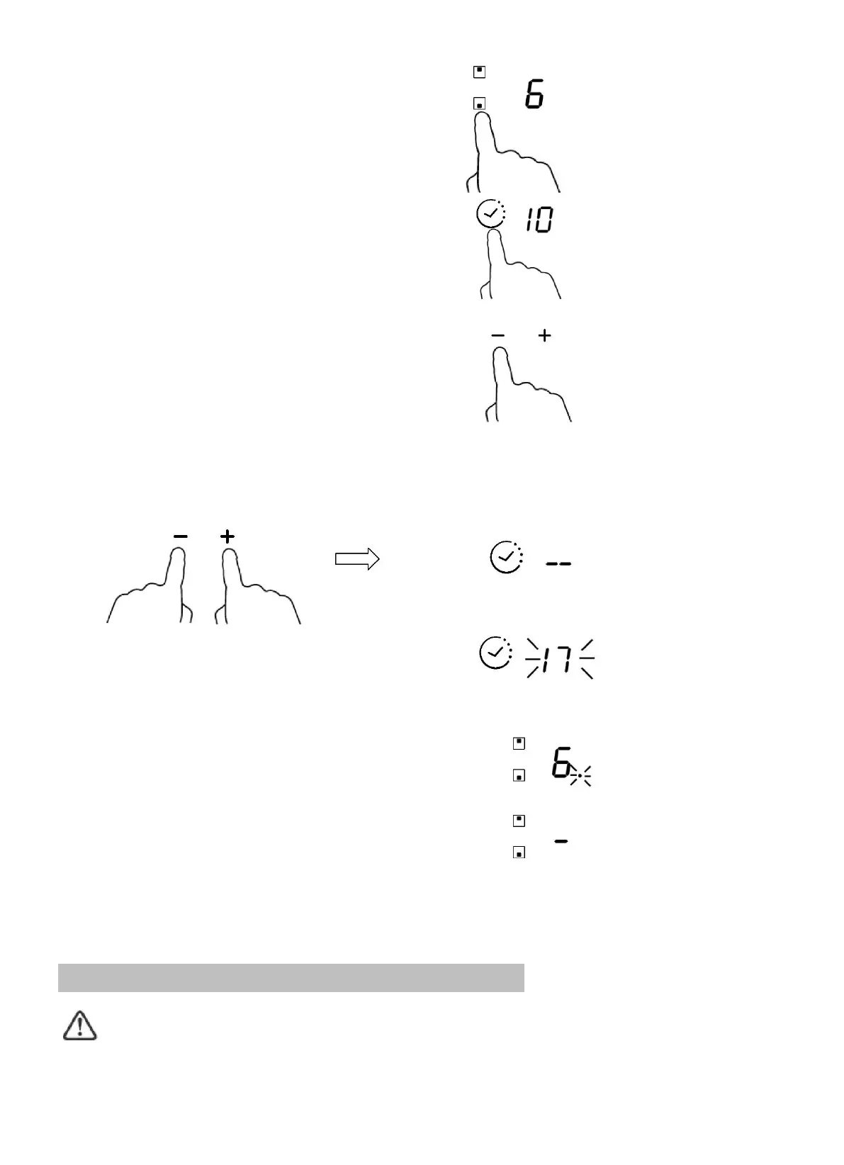 4. Keď sa súčasne dotknete symbolu „-“ a „+“, časovač sa zruší a v zobrazení minút sa objaví „ - - “.