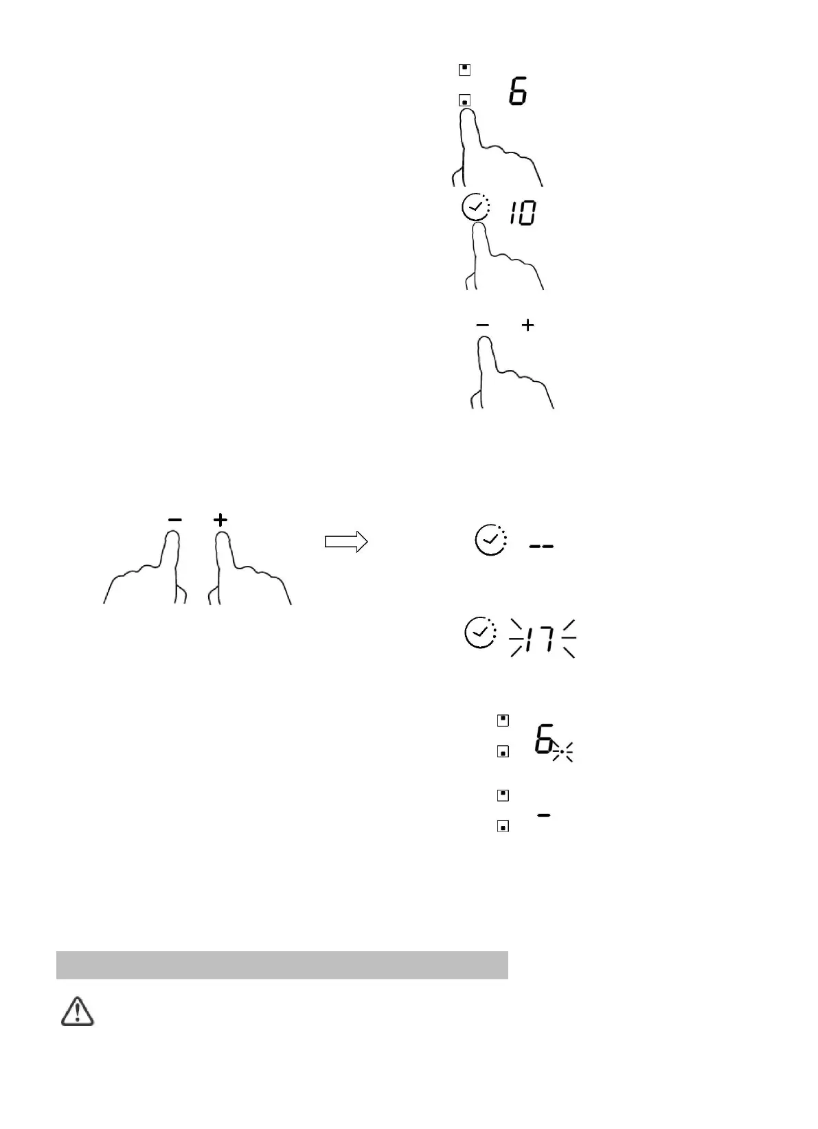 4. Istovremenim dodirom na „-“ i „+“, tajmer se otkazuje i na ekranu za minute prikazuje se „- -“.