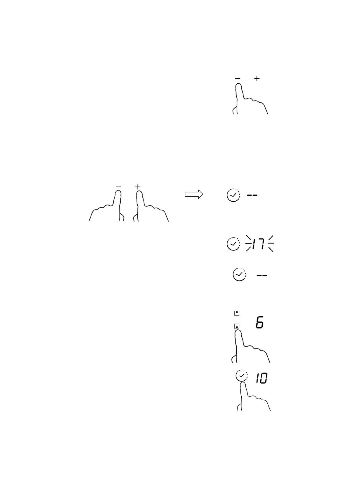 Blijf de toets “-” of “+” van de timer aanraken, de