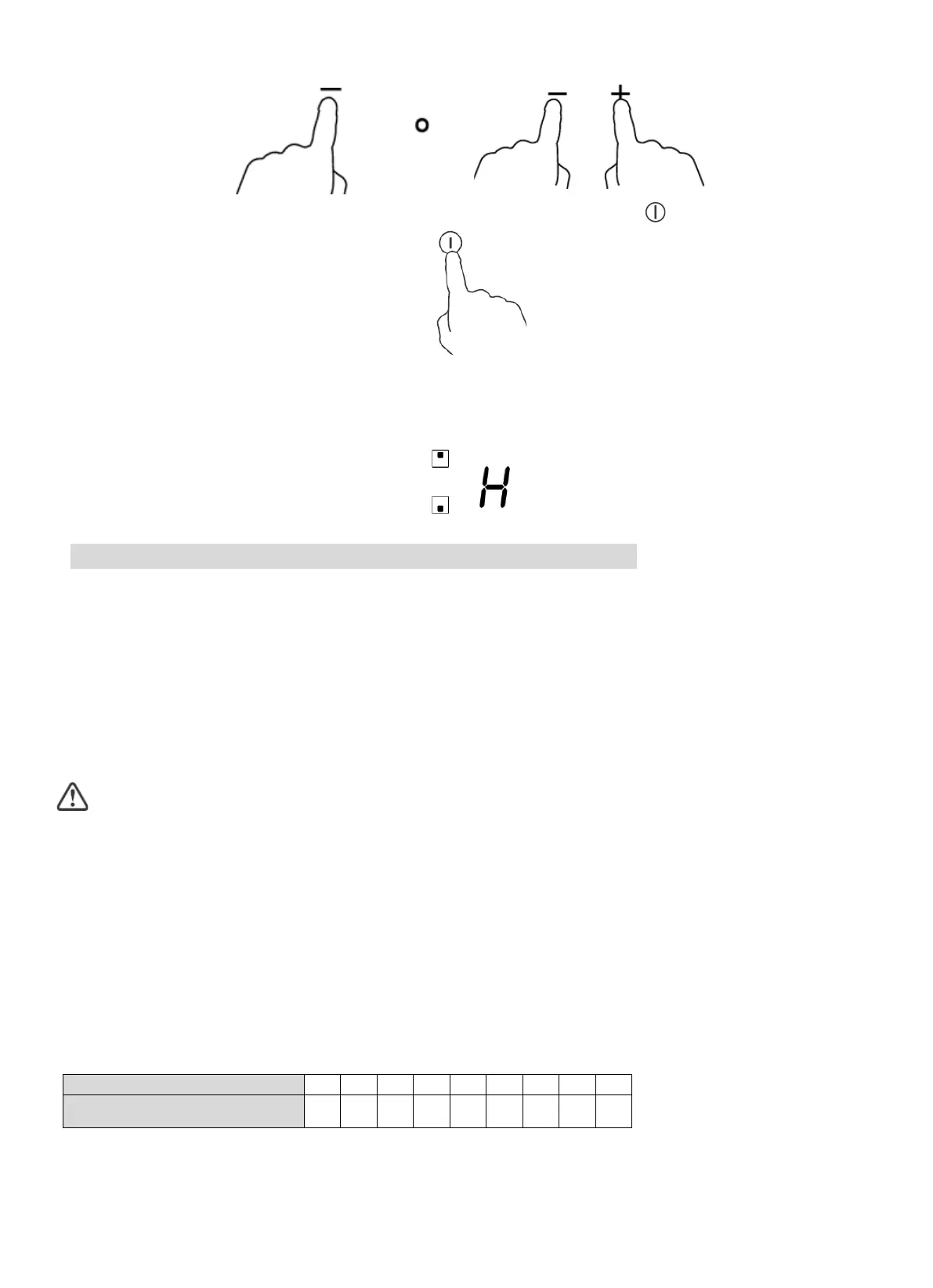 Después de funcionar durante un rato, quedará algo de calor residual en la encimera. La aparición de la letra “H”