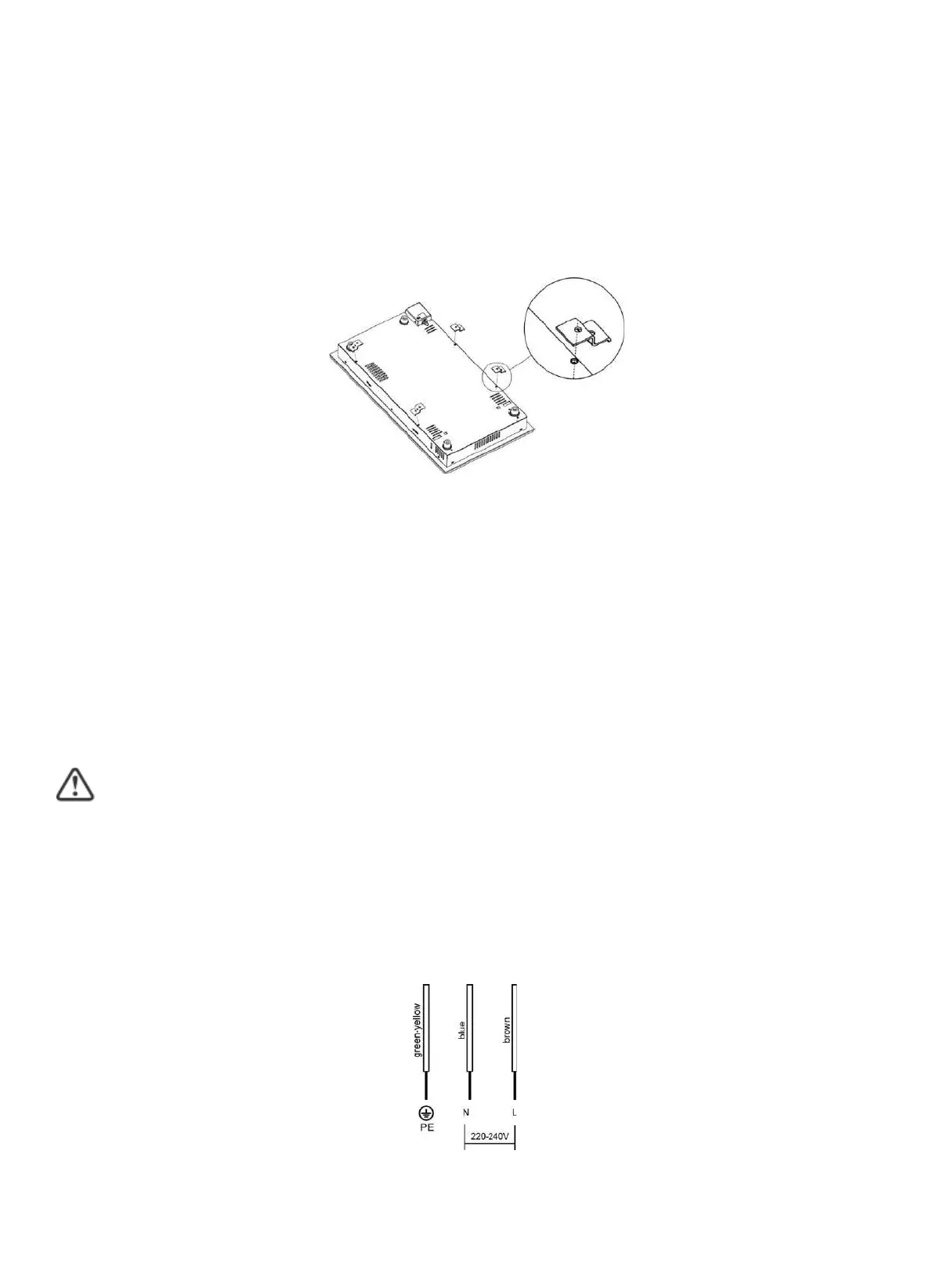 Зафиксируйте панель в рабочей поверхности, завинтив 4 кронштейна внизу варочной панели (см. рисунок) после ее