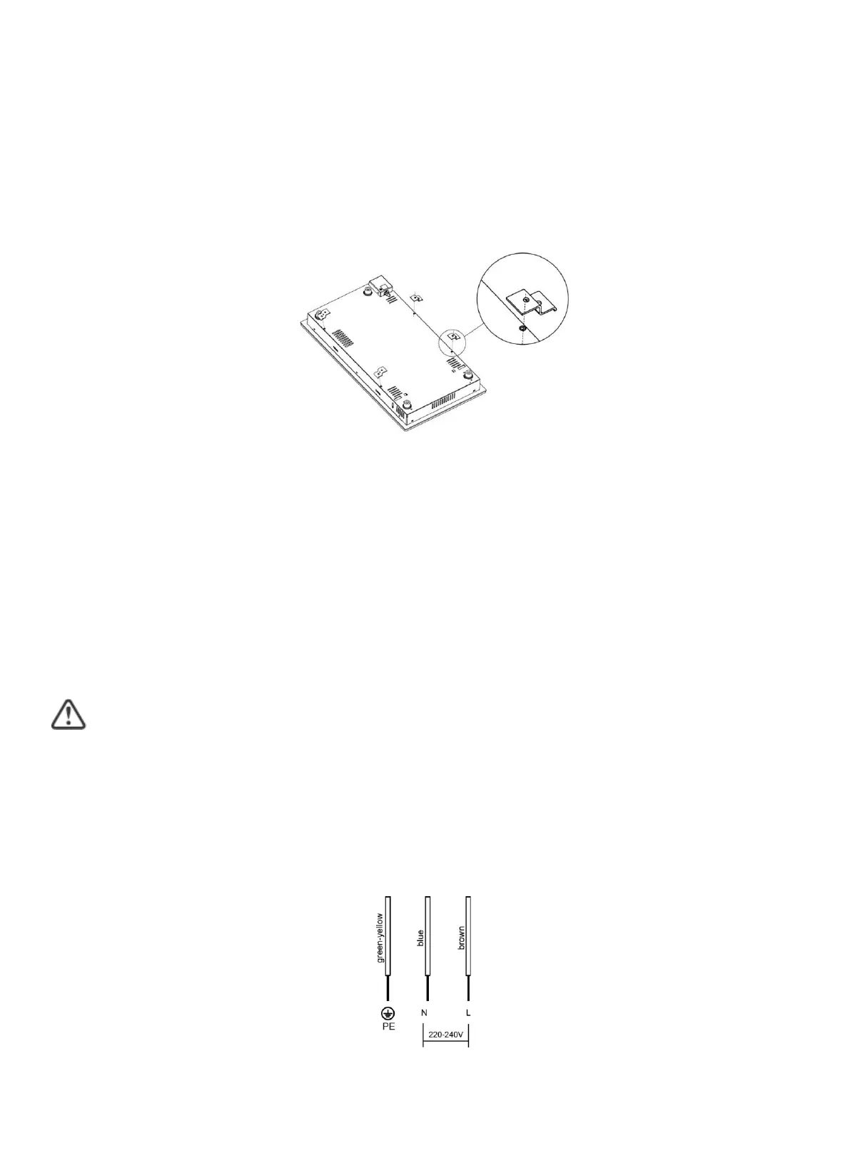 Зафиксируйте панель в рабочей поверхности, завинтив 4 кронштейна внизу варочной панели (см. рисунок) после ее
