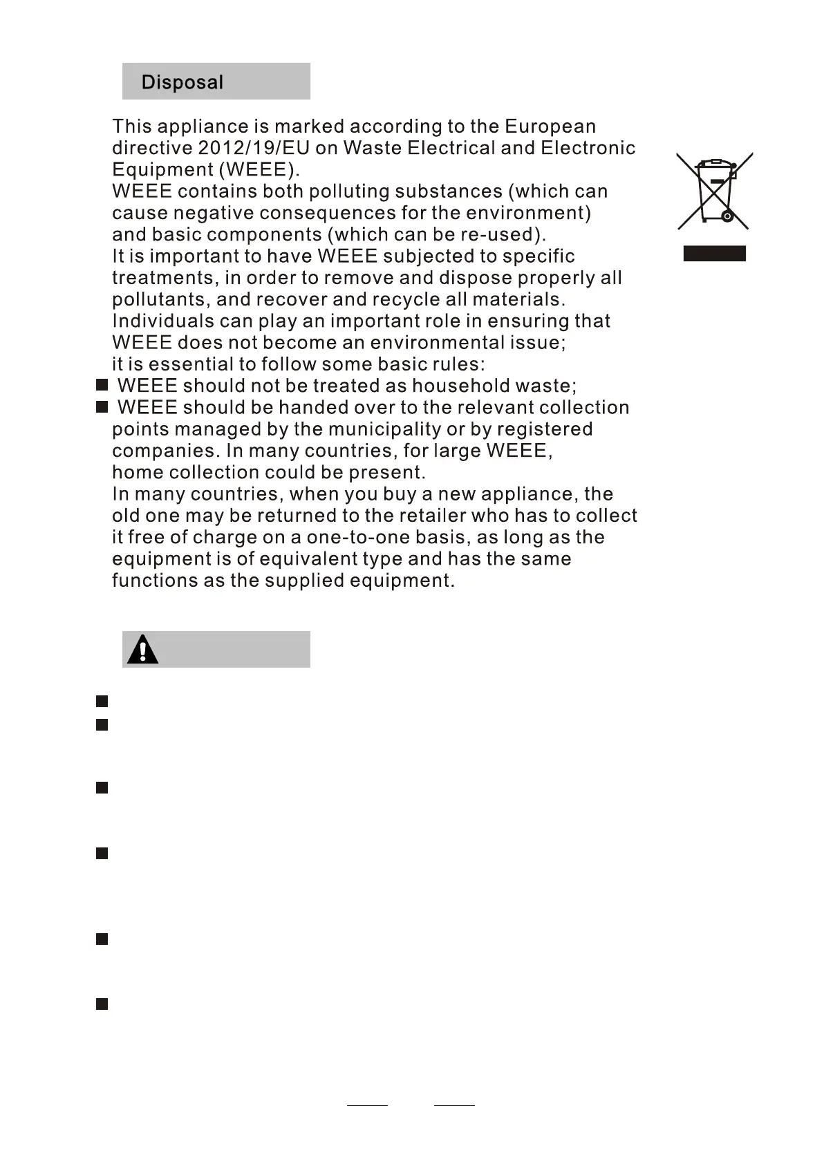 For disposing of package and the appliance please go to a