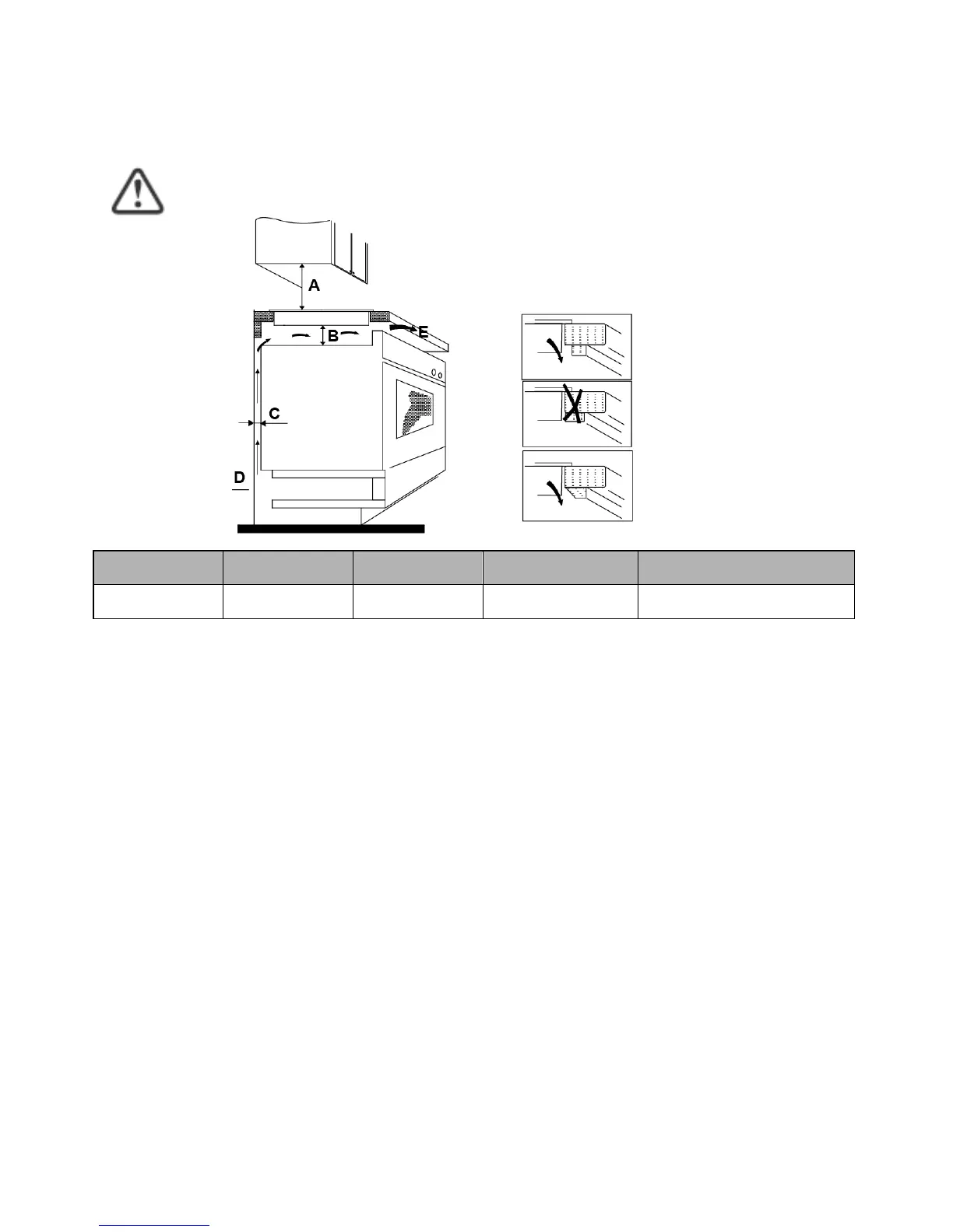 Nota: A distância de segurança entre a placa quente e o armário por cima