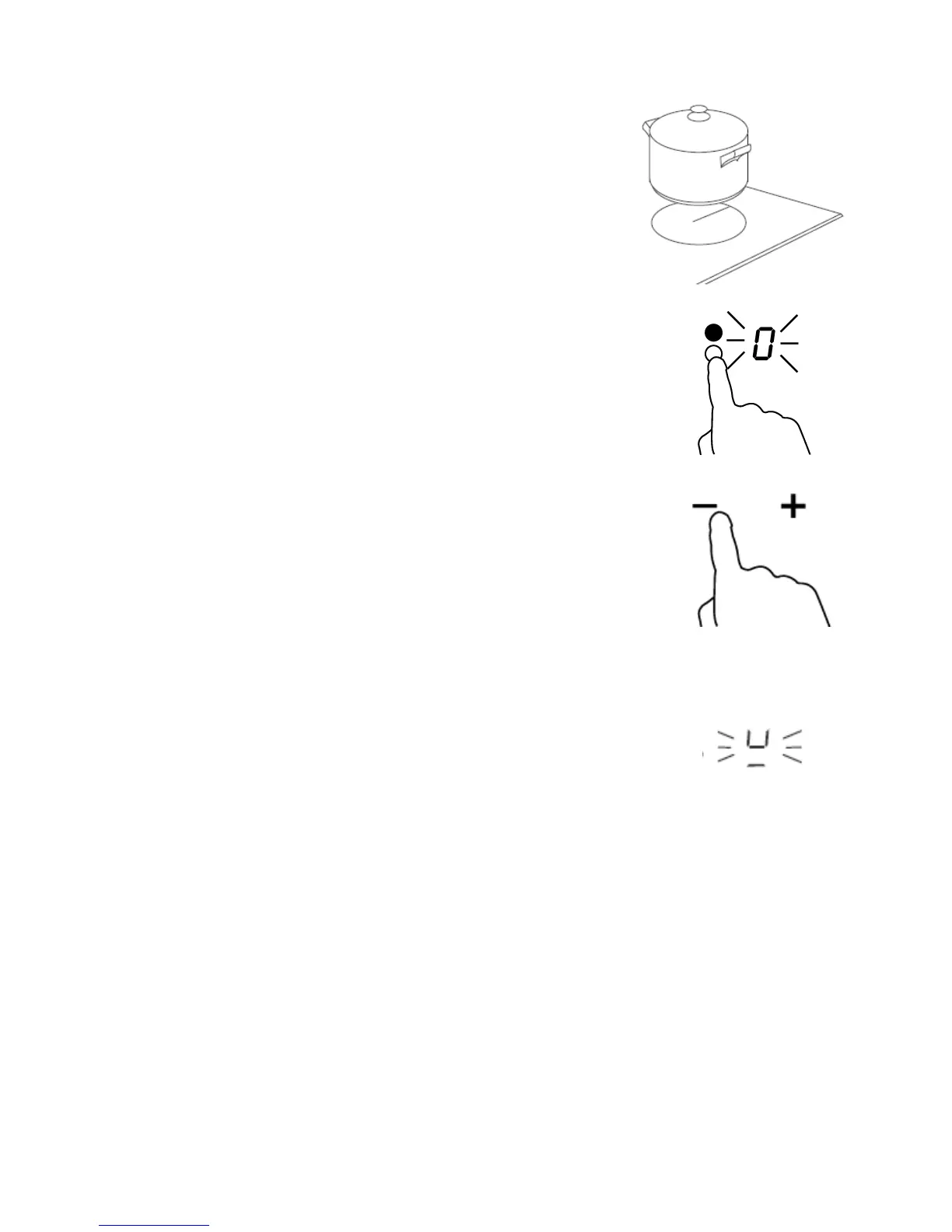 Если на зону нагрева не установлена подходящая посуда, то нагрев выполняться не