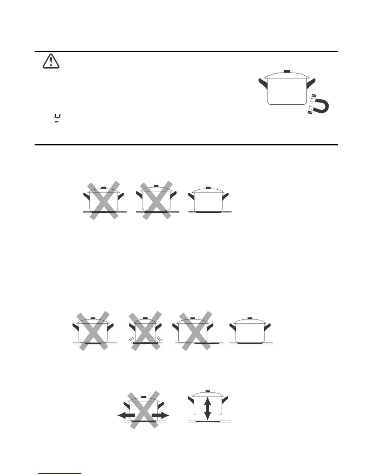 Always lift pans off the Induction hob – do not slide, or they may scratch the