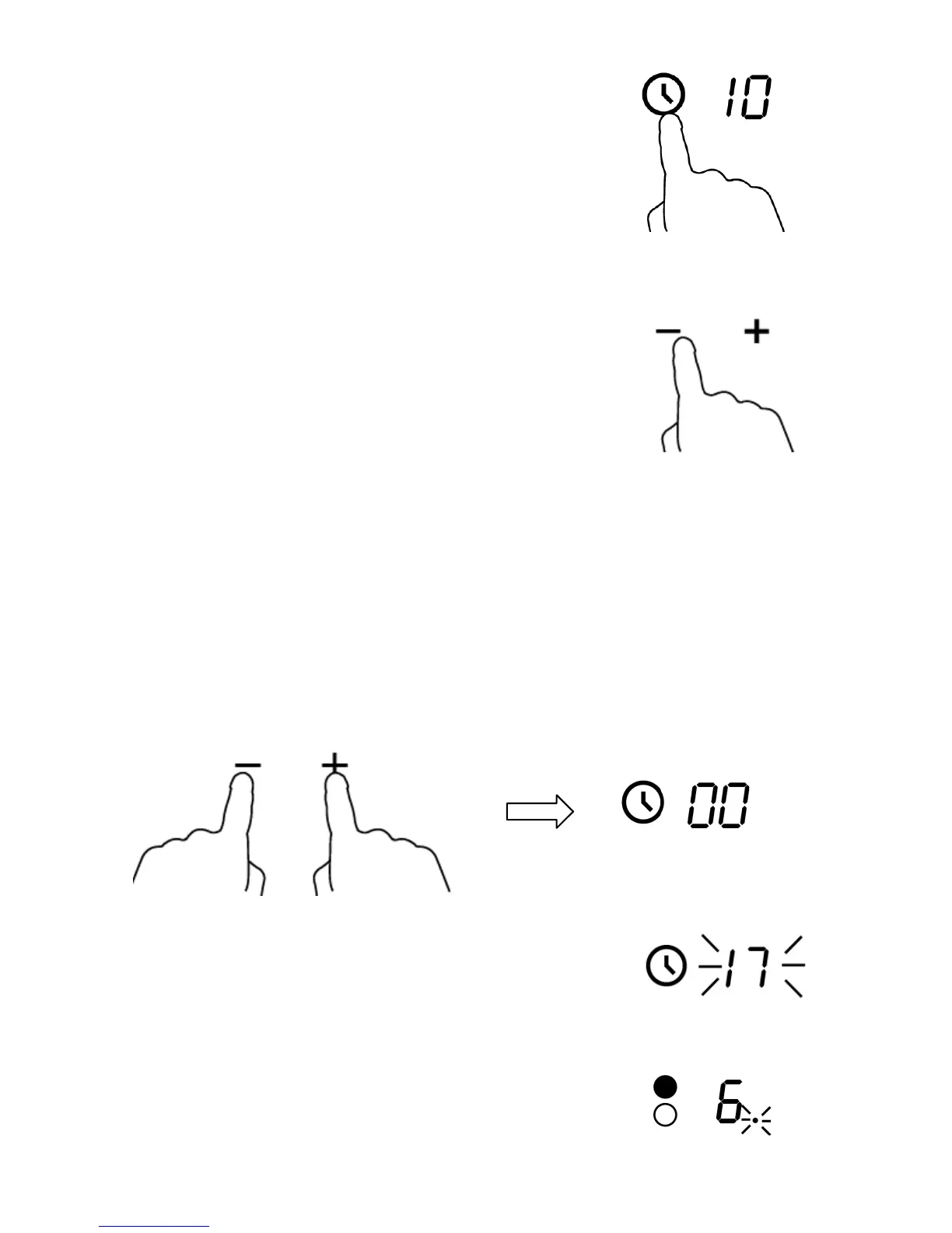 Toque “-” y “+” a la vez para cancelar el temporizador y que aparezca “00” en