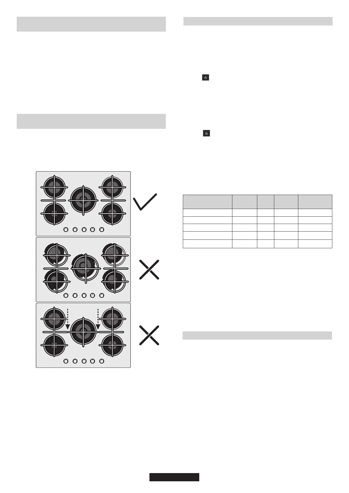 Pred vklopom plinske kuhalne plošče se prepričajte, da so gorilniki in