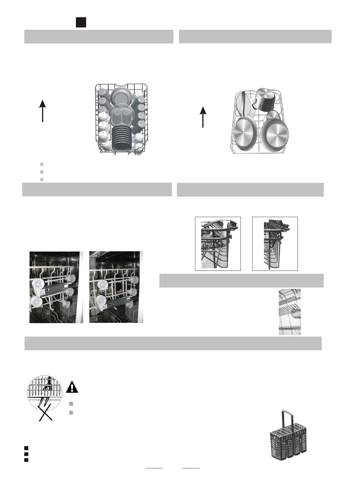 Cutlery should be placed in the cutlery basket with the handles at the bottom. If the rack has side baskets, the