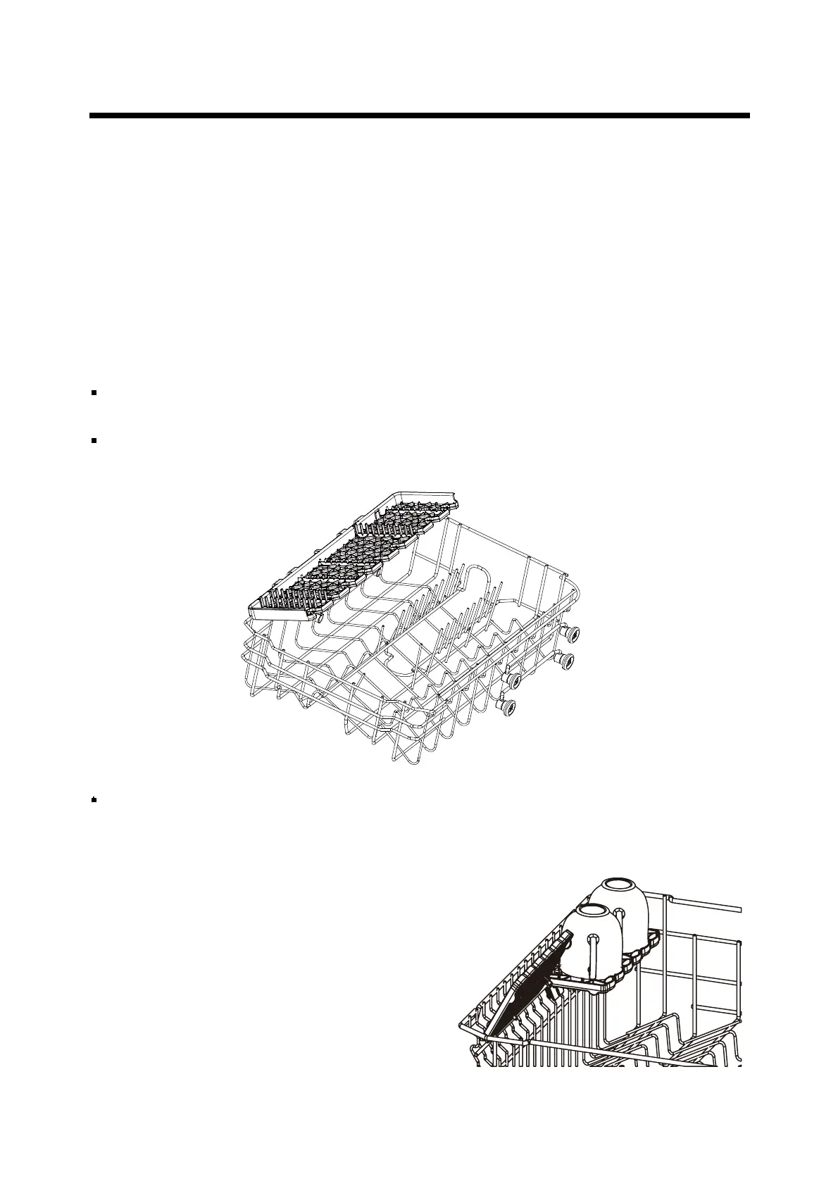 The upper rack is designed to hold items like glasses, cups, saucers, plates and
