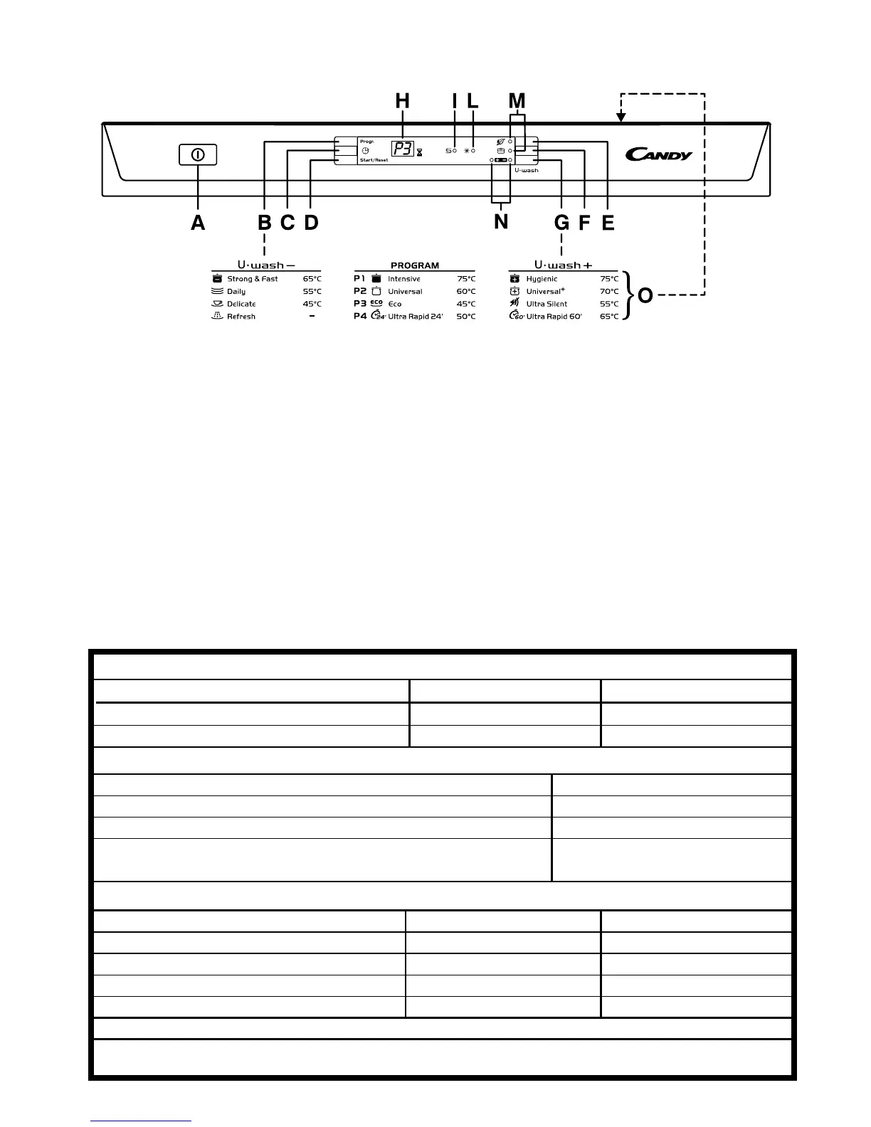 "U WASH" indicatielampjes