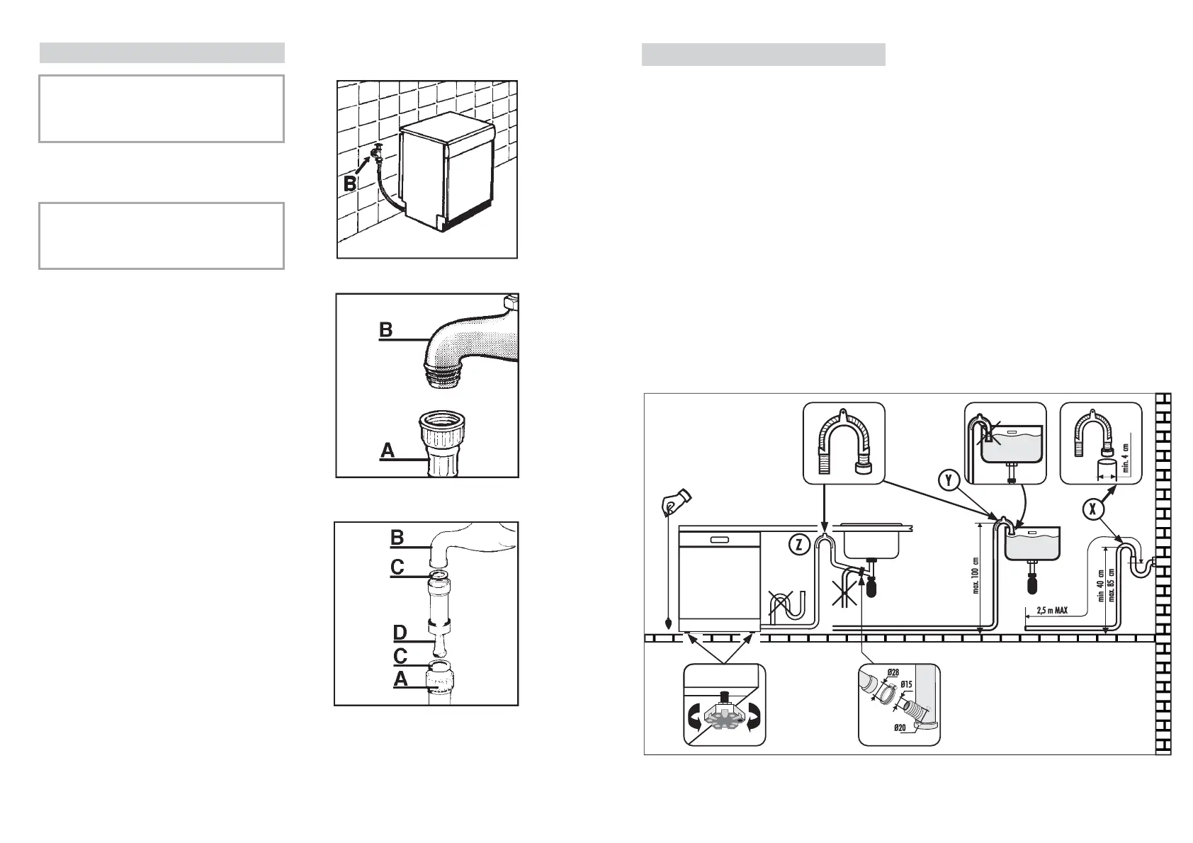 ■ Avloppsslangen skall rinna ut i ett lodrätt